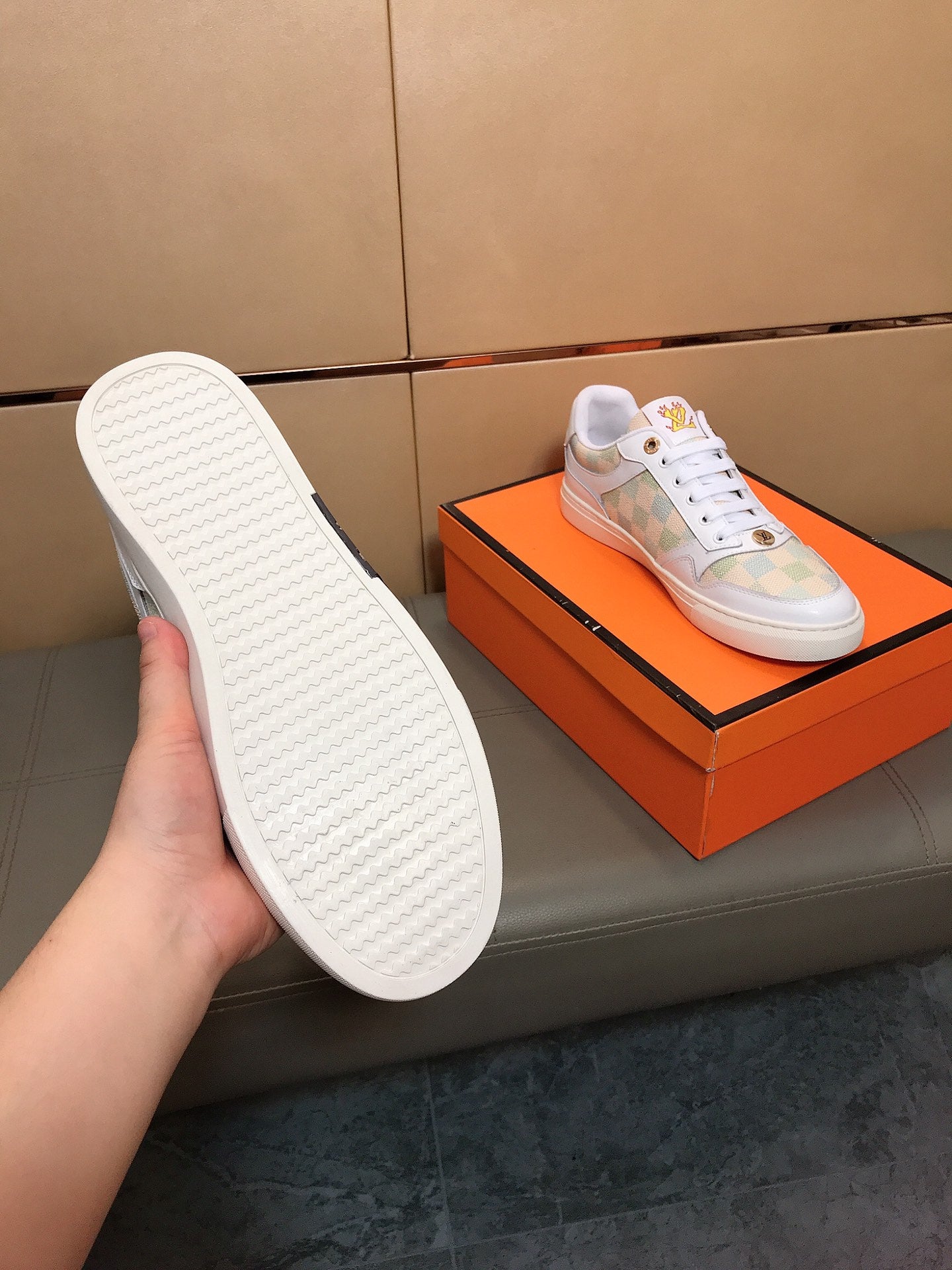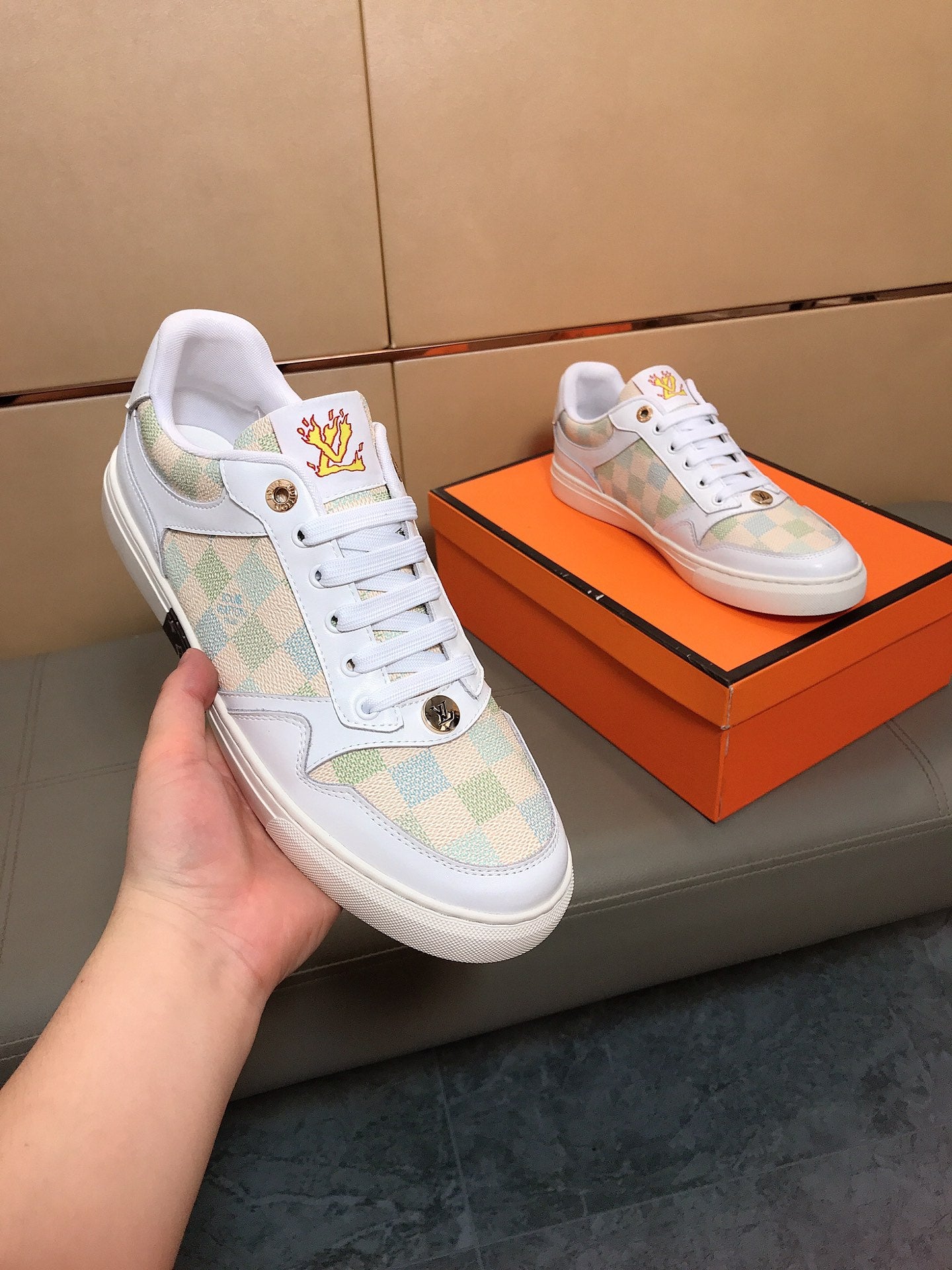 Upper crafted from Italian imported leather + brand monogram fabric. Lambskin insole for added comfort 🔥, making walking easier and more comfortable! A stunning masterpiece [color]! Stylish and unique, perfect for trendy men! Classic must-have 🔥