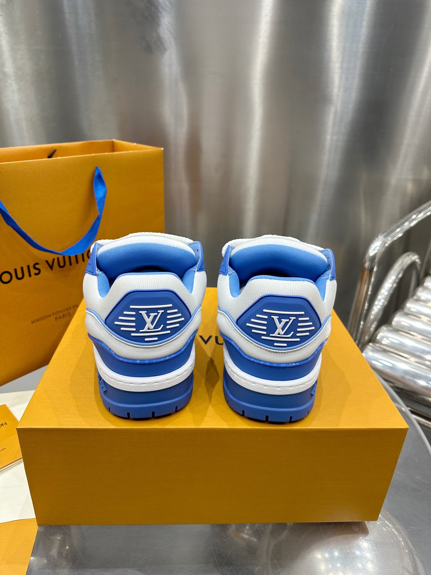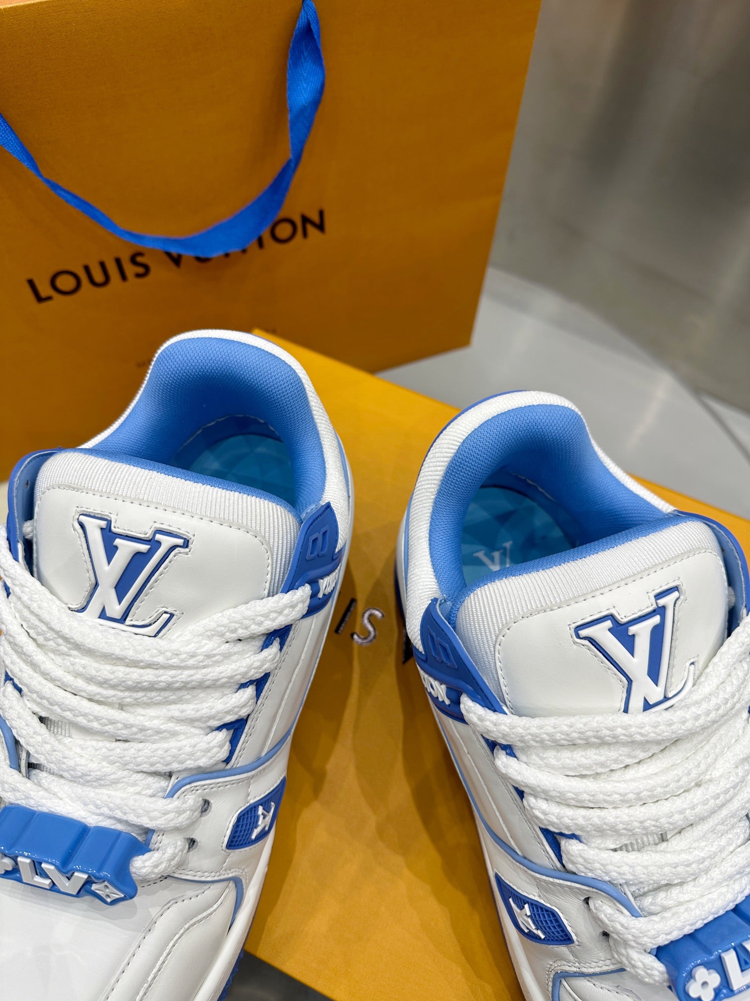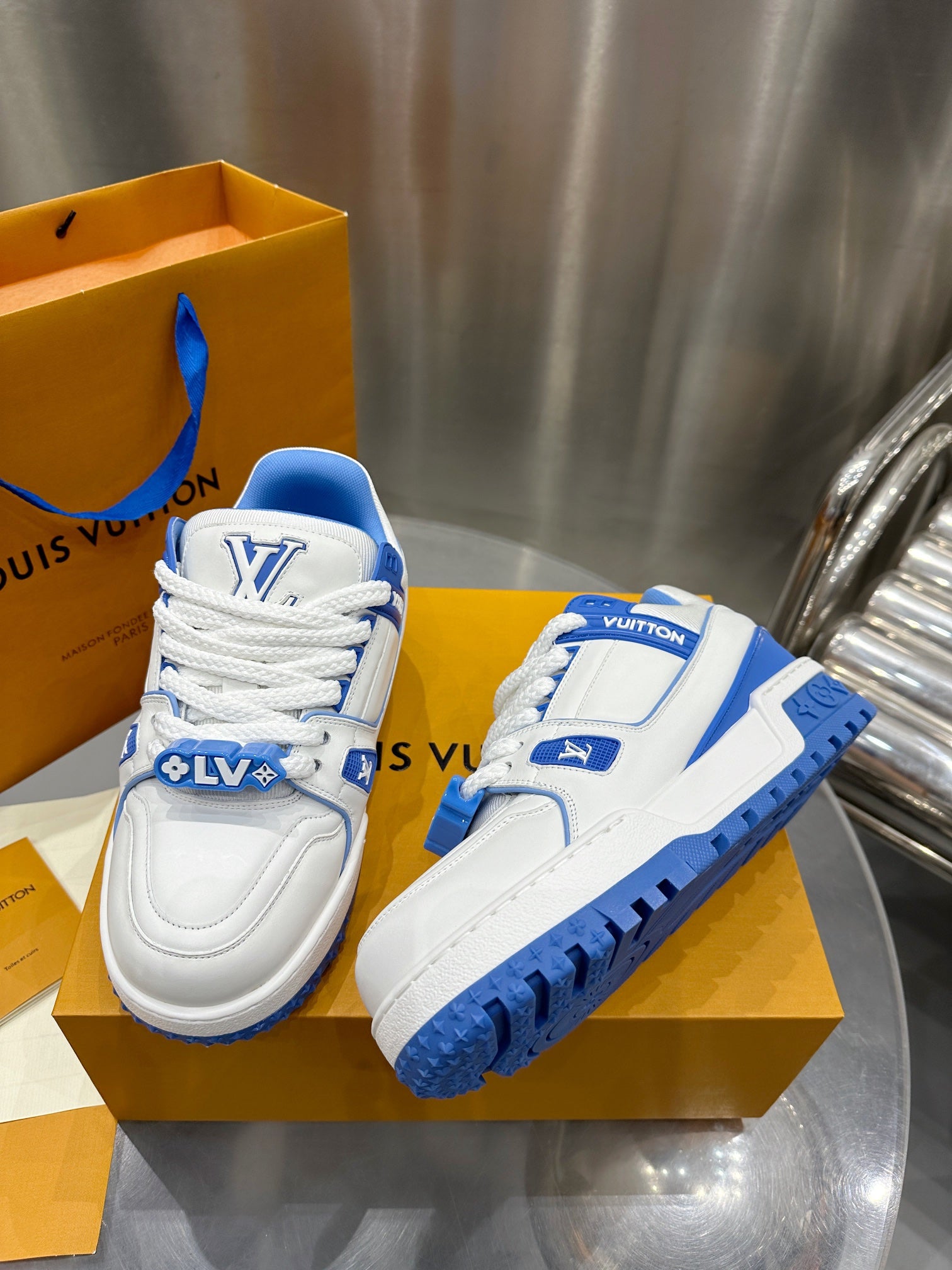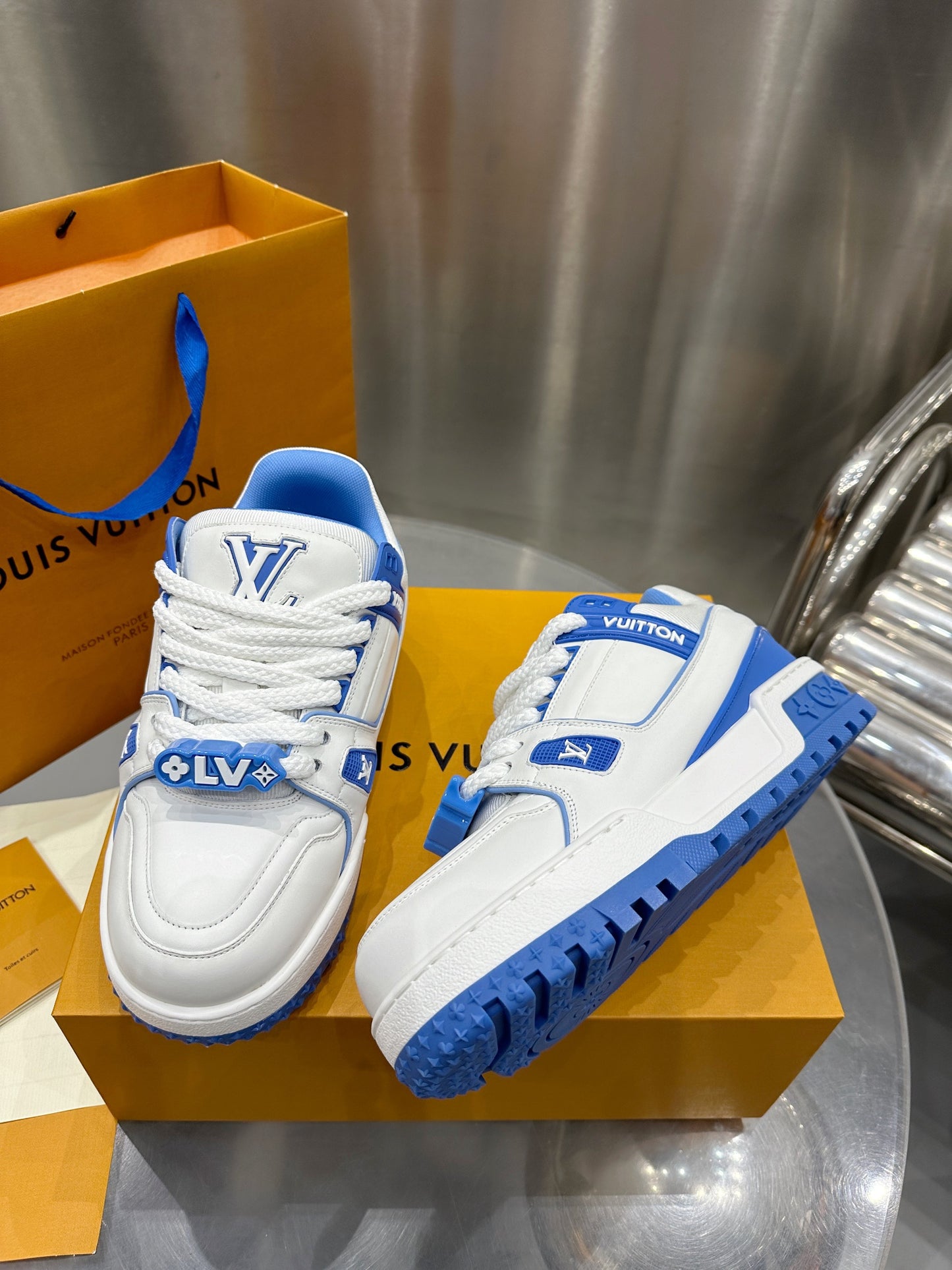 Louis Vuitton 2023 Men’s Spring/Summer Runway release. This “puffed-up” Trainer is eye-catching! Full, colorful 3D silhouette paired with contrasting letters and logo on the laces, giving the shoe a playful, clay-like look, blending trendiness with whimsical charm.