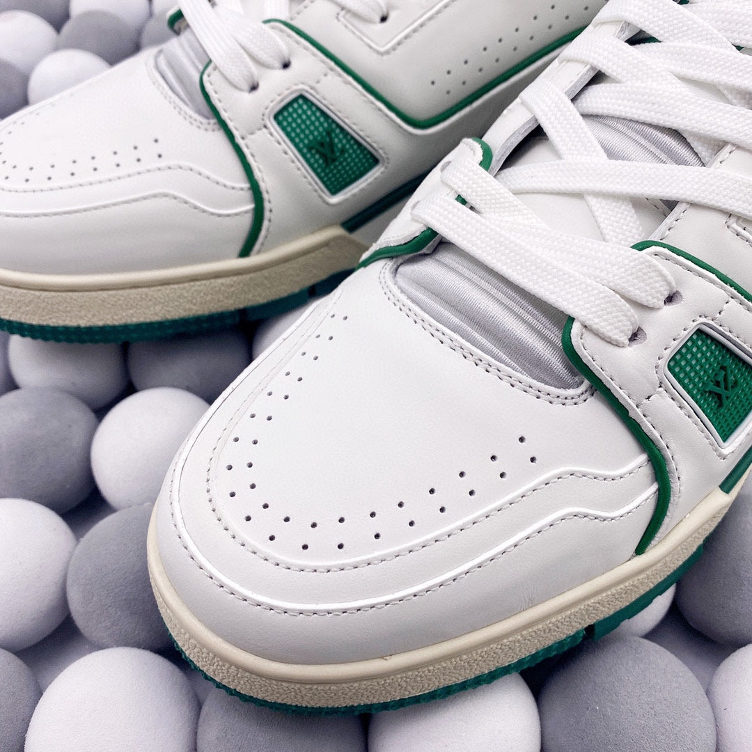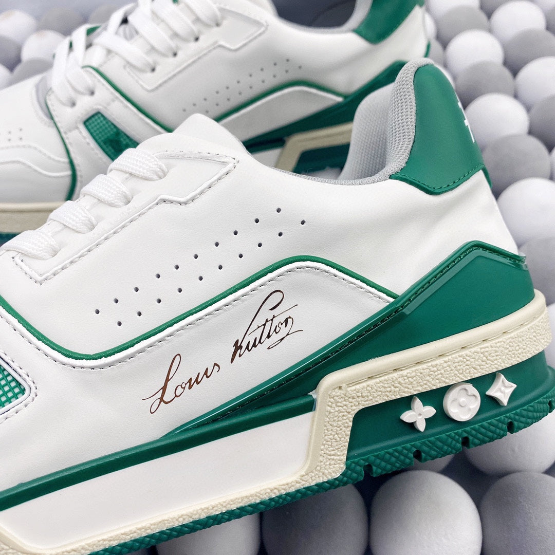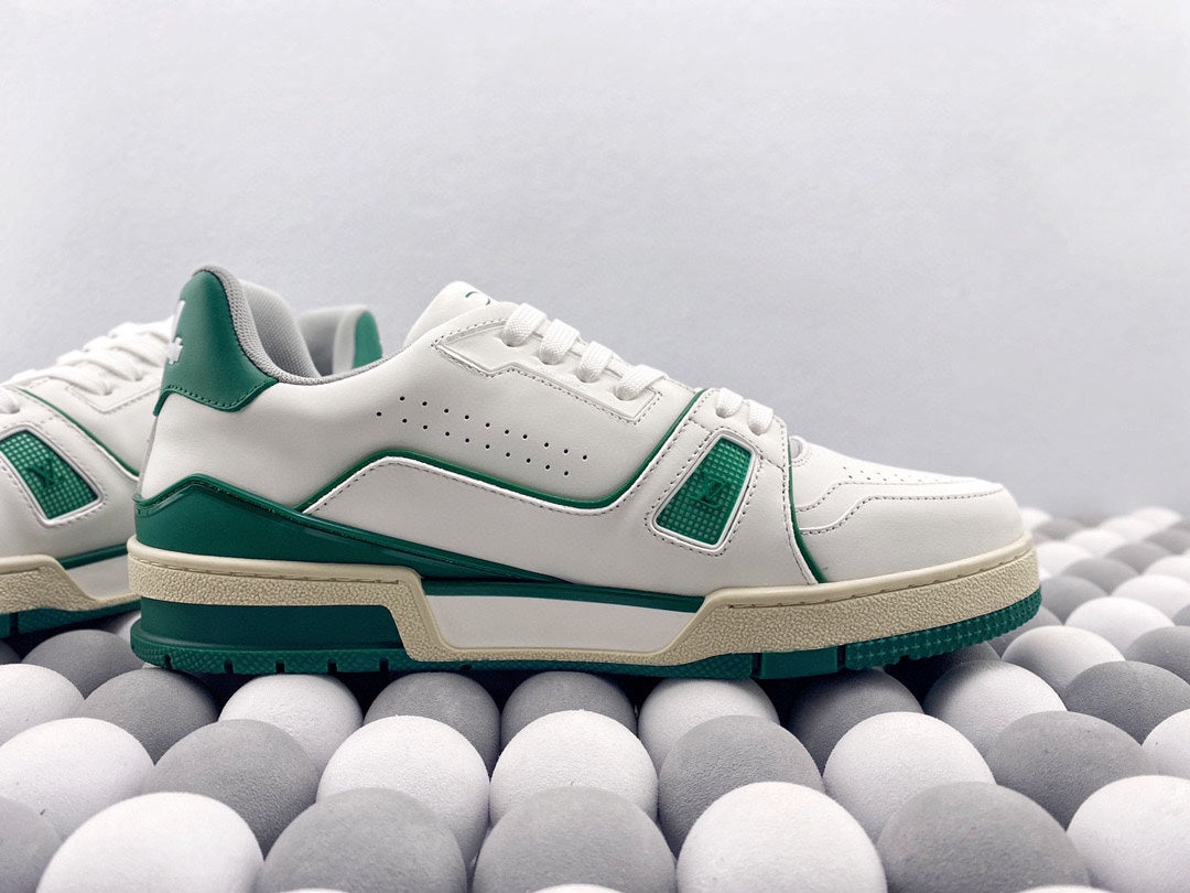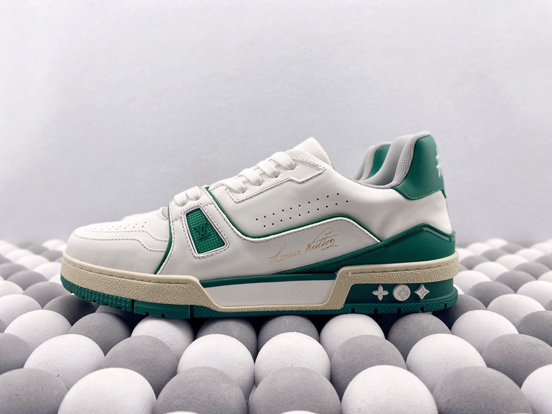 Exclusive In-Stock Louis Vuitton 1V Trainer Low-Top Sneakers in Classic White & Green