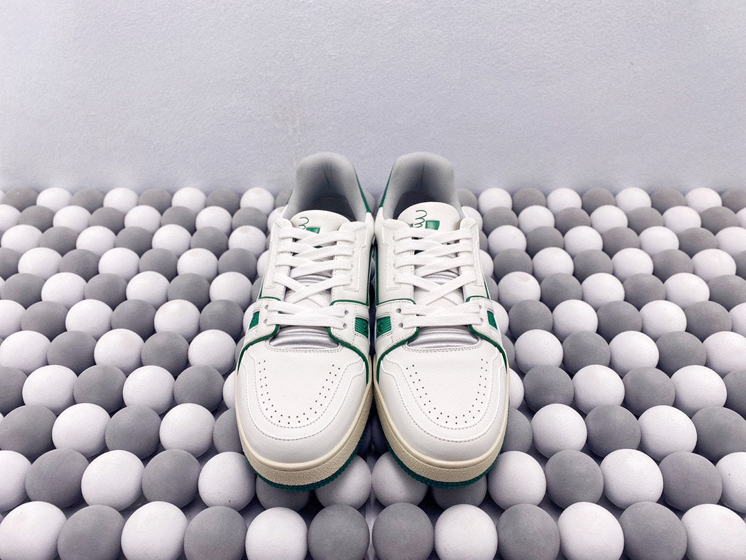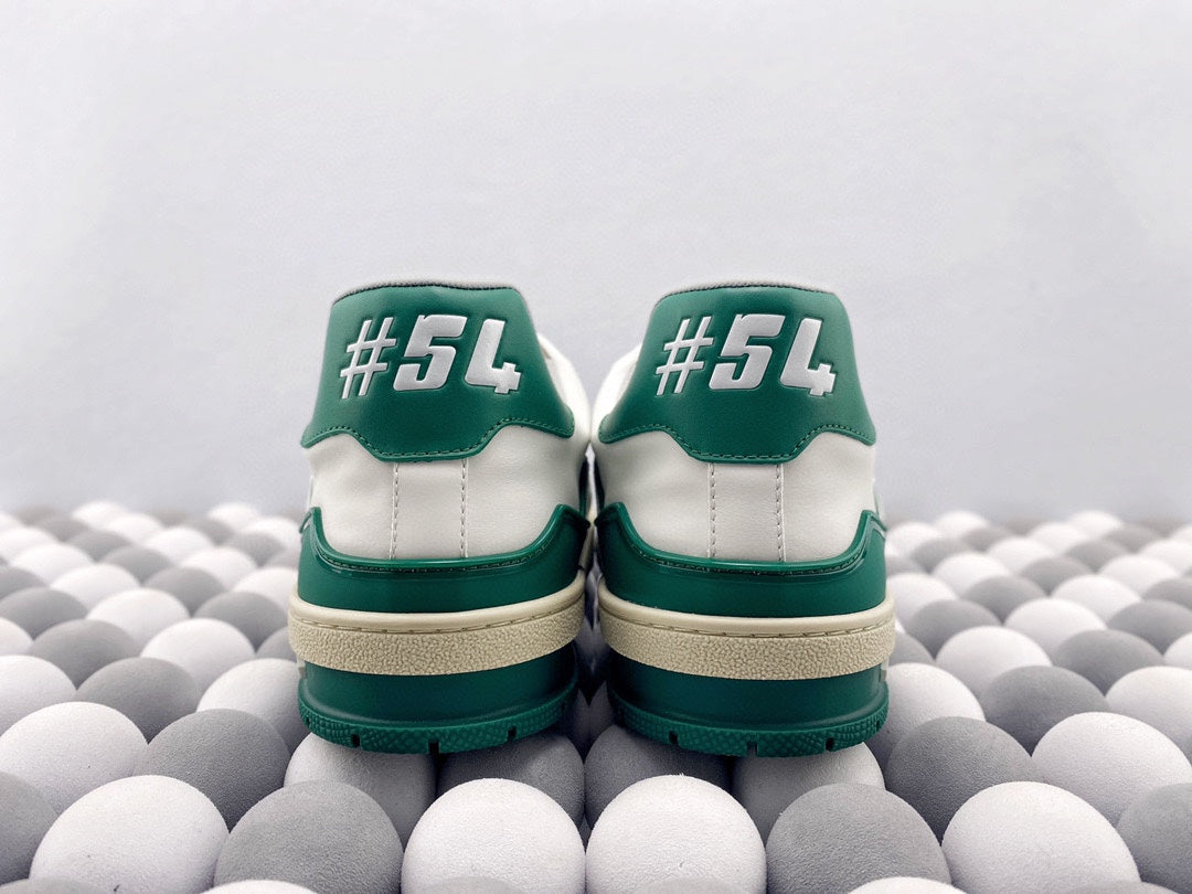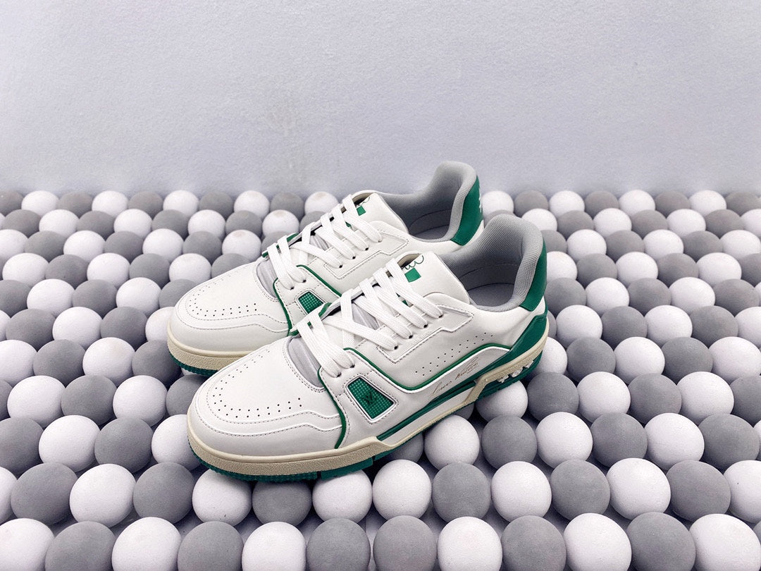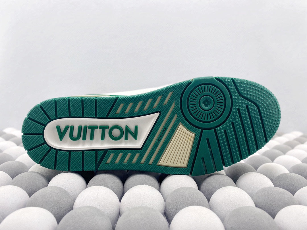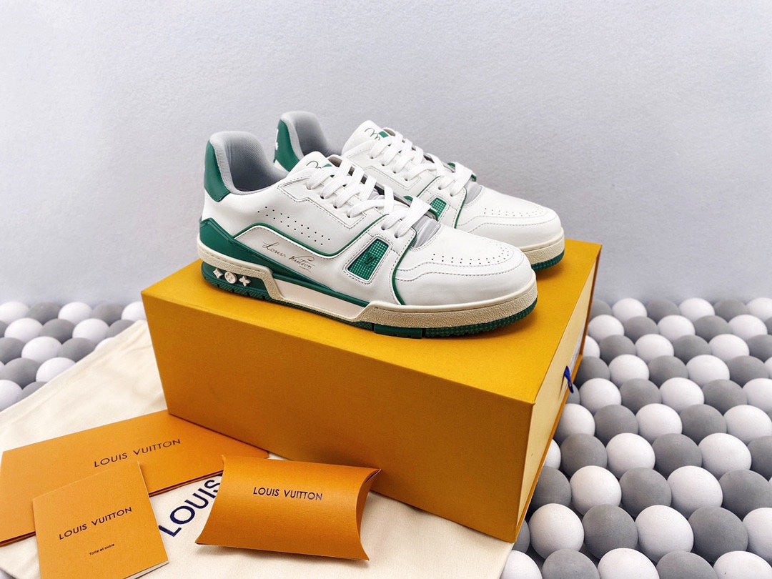 Exclusive In-Stock Louis Vuitton 1V Trainer Low-Top Sneakers in Classic White & Green