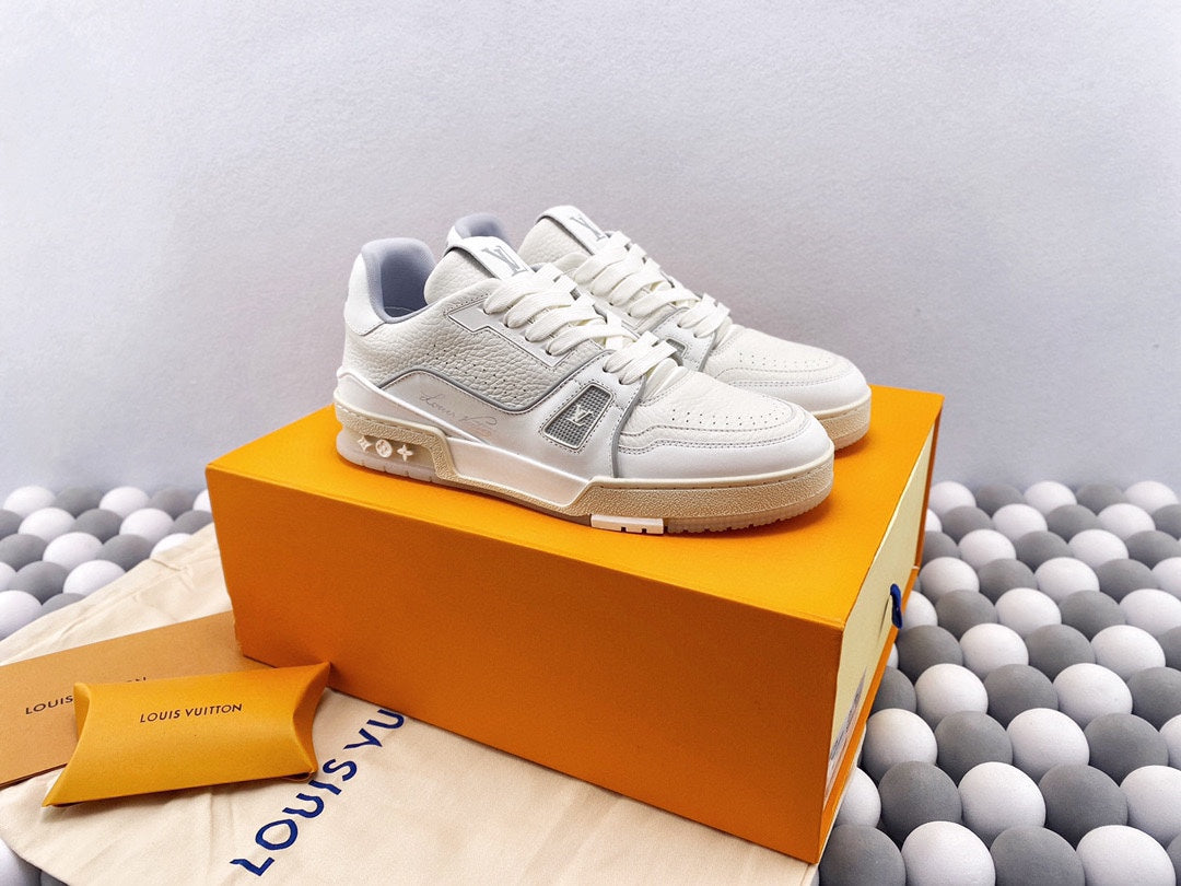 Exclusive In-Stock Louis Vuitton 1V Trainer Low-Top Sneakers in White