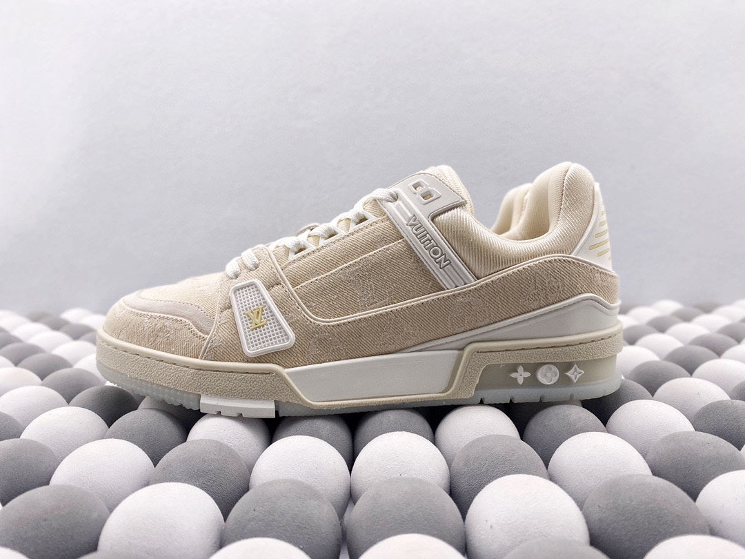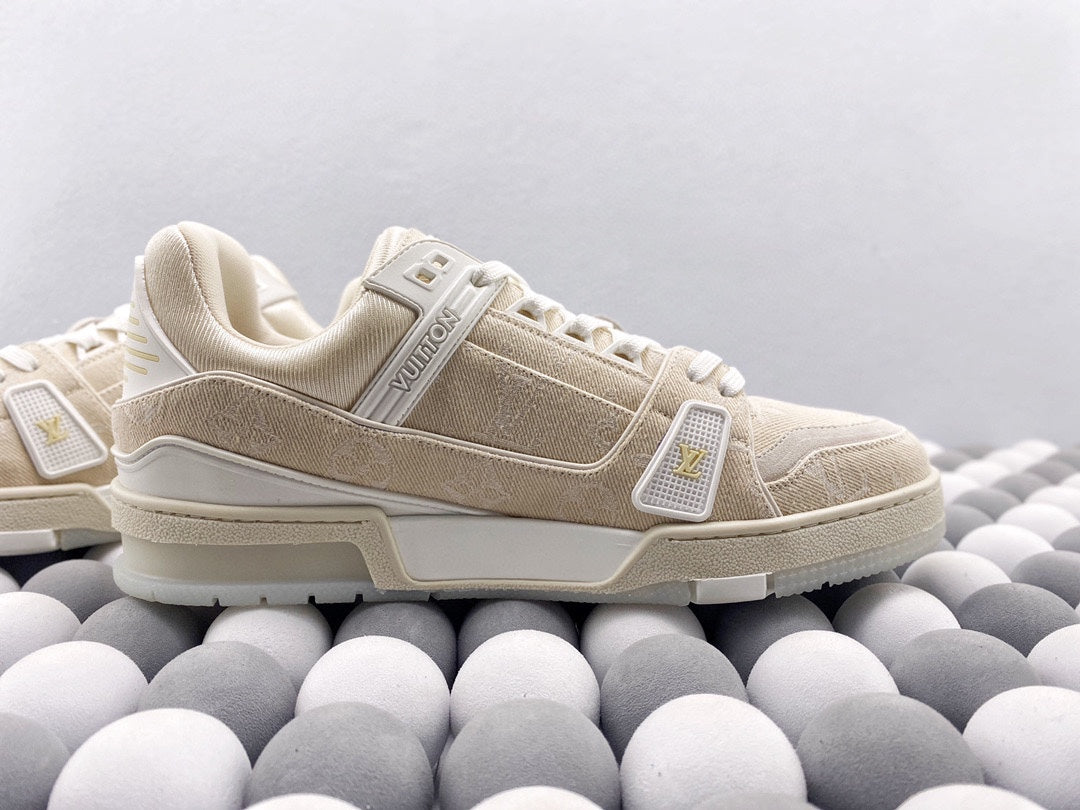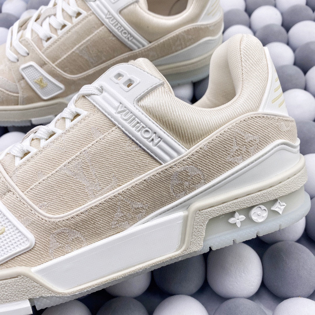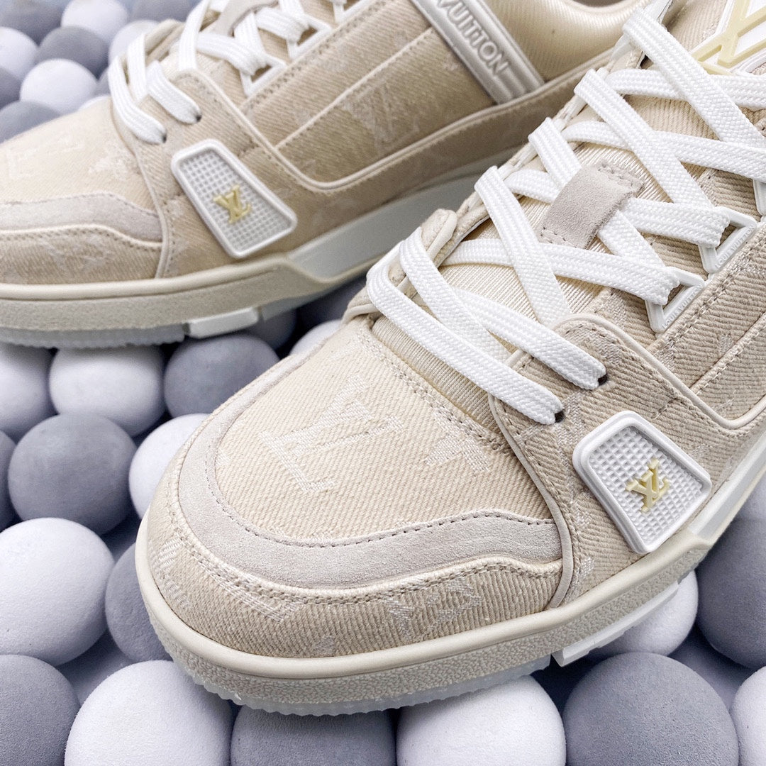 Exclusive In-Stock Louis Vuitton 1V Trainer Low-Top Sneakers in White Denim