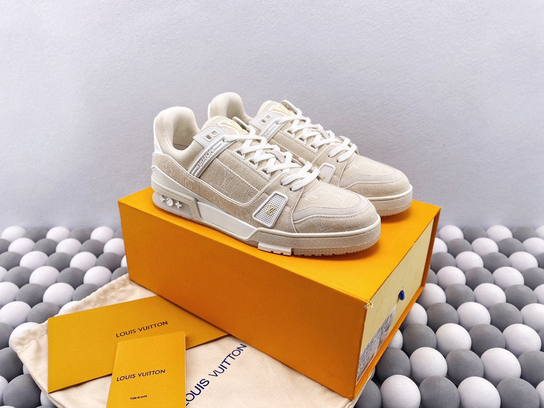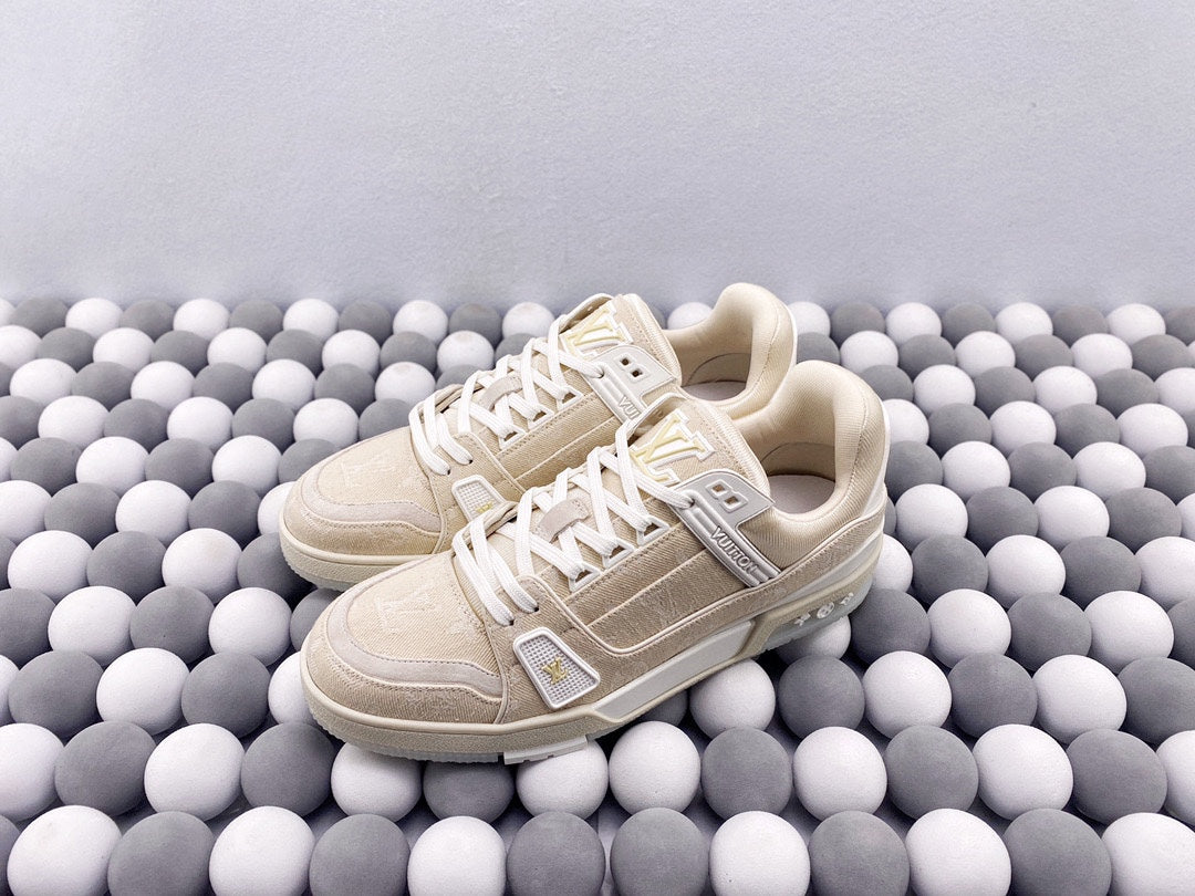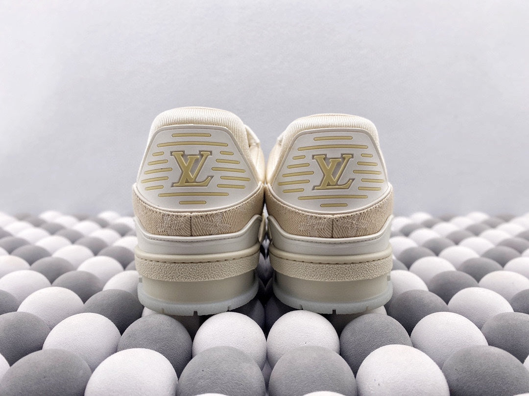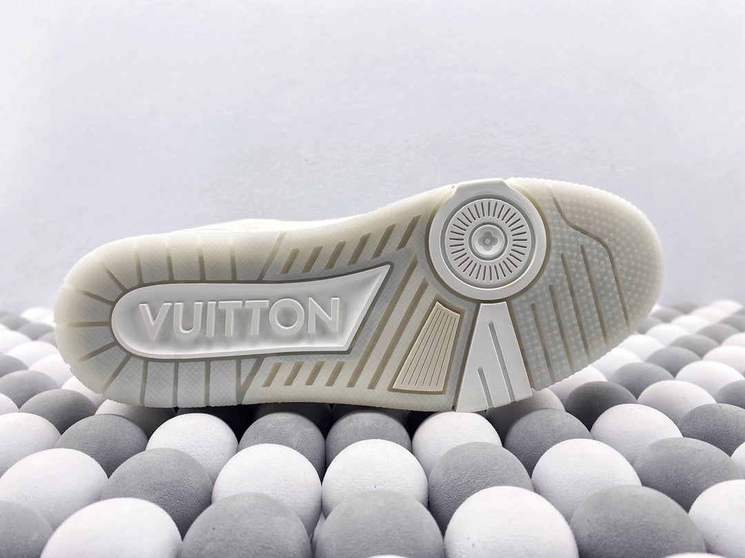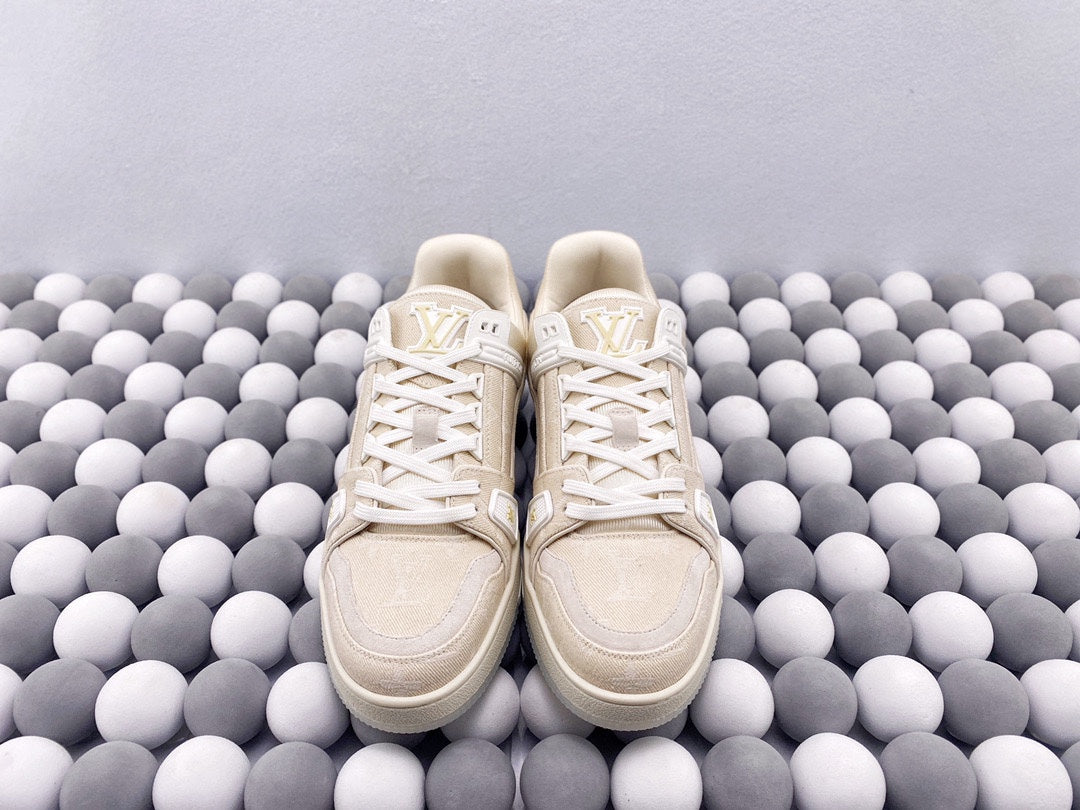Exclusive In-Stock Louis Vuitton 1V Trainer Low-Top Sneakers in White Denim