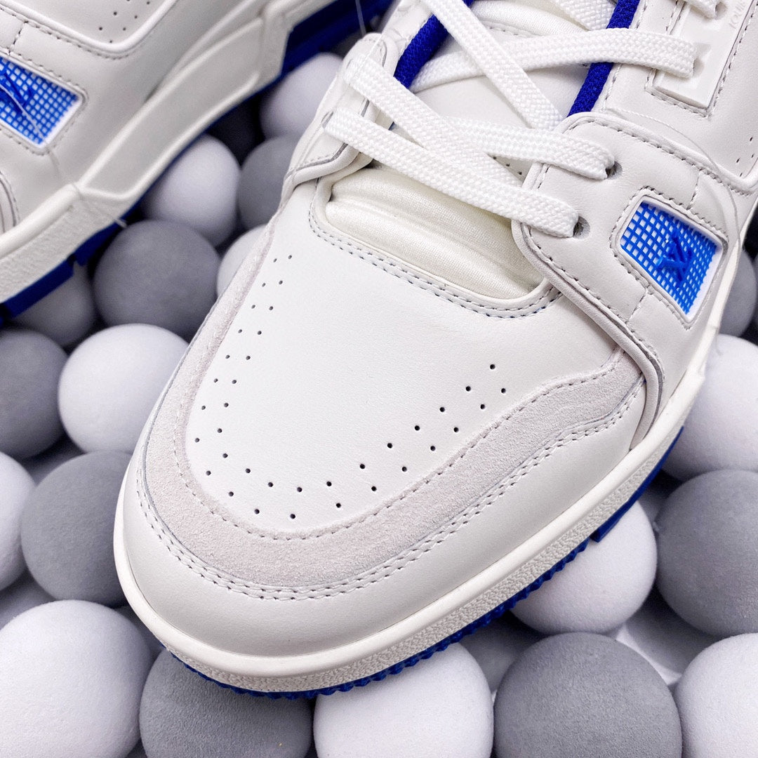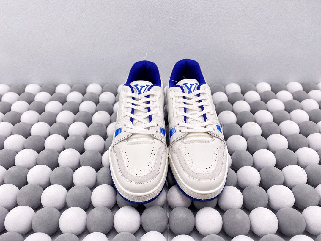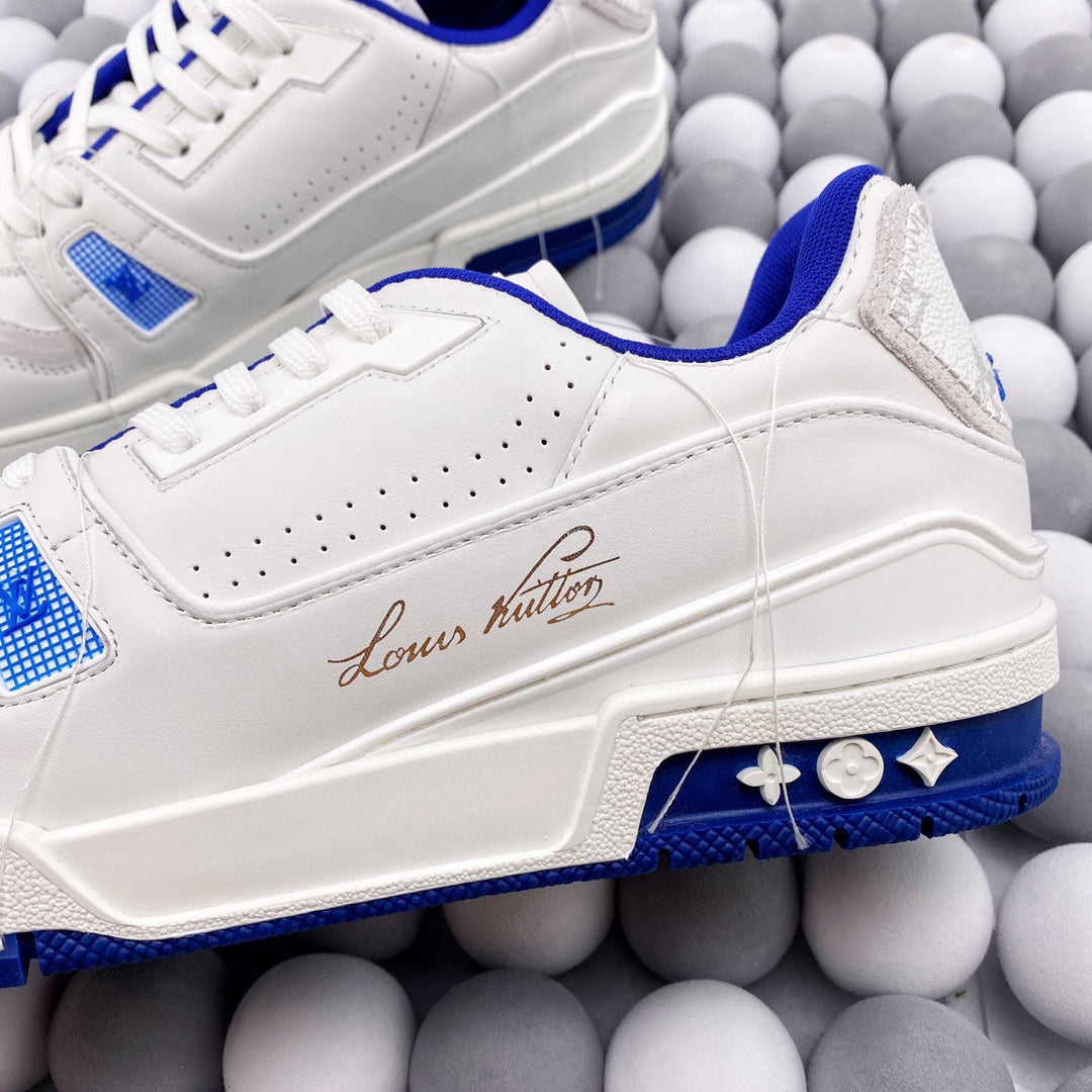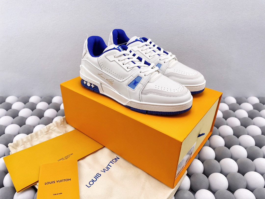 Exclusive In Stock Louis Vuitton 1V Trainer Low-Top Shoes White & Blue Tassel