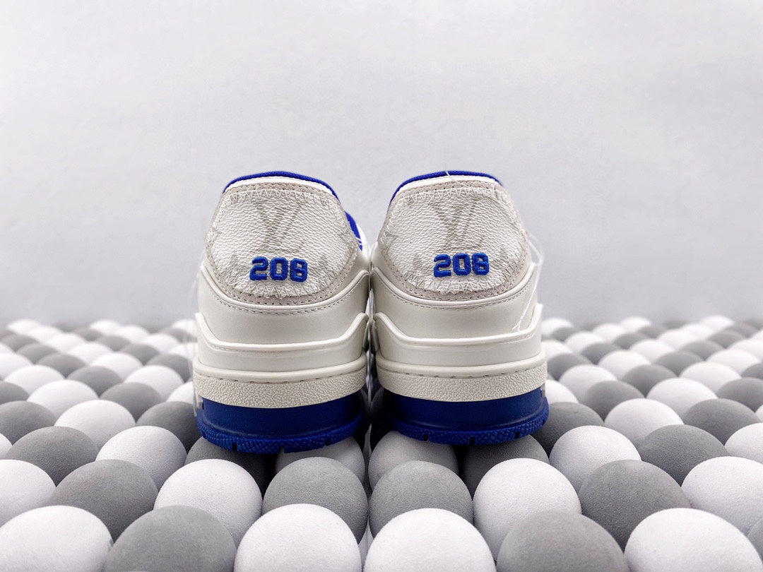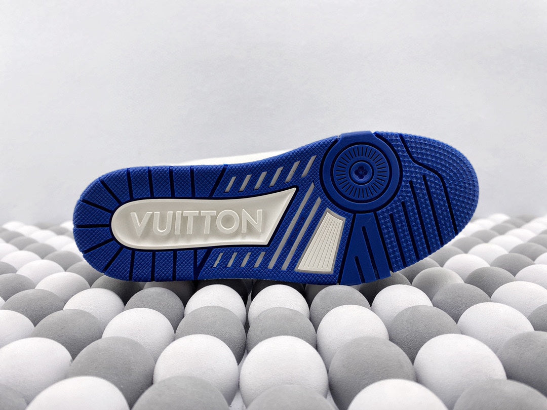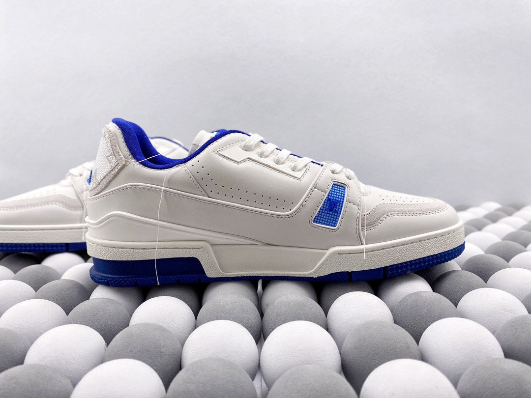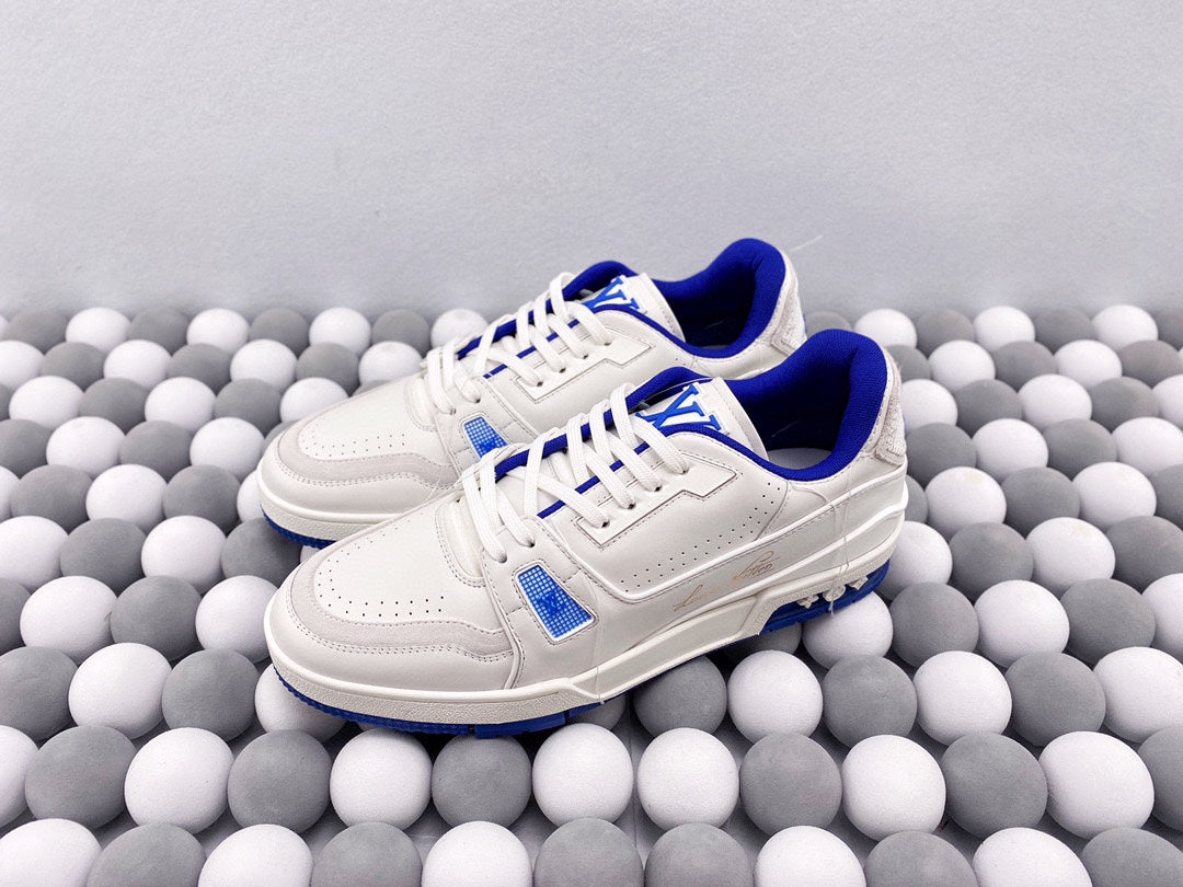 Exclusive In Stock Louis Vuitton 1V Trainer Low-Top Shoes White & Blue Tassel