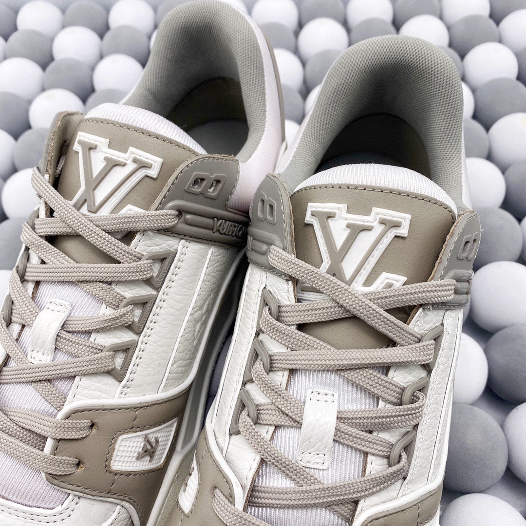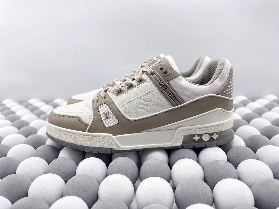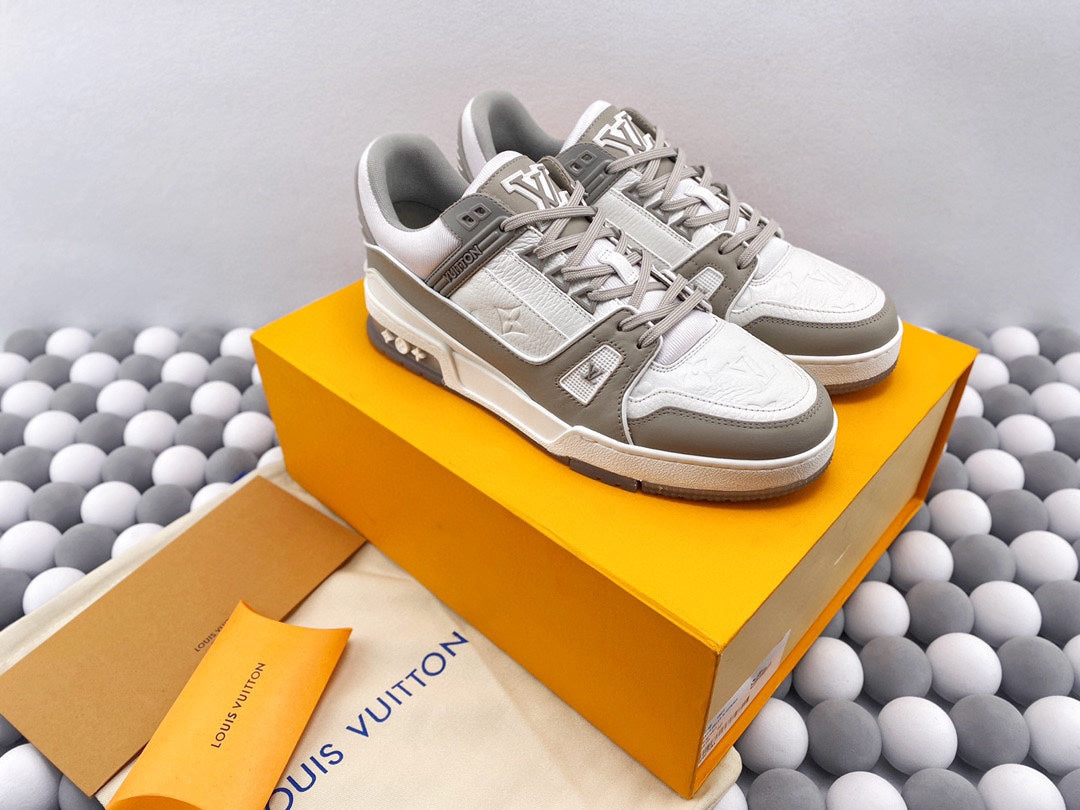 Exclusive In Stock Louis Vuitton 1V Trainer Low-Top Shoes White & Grey