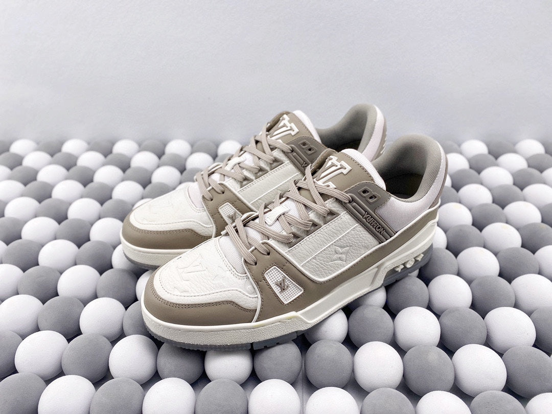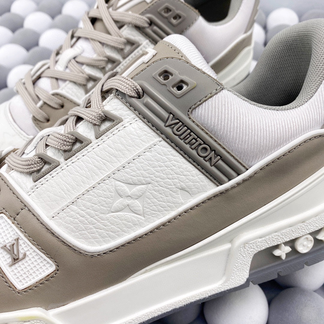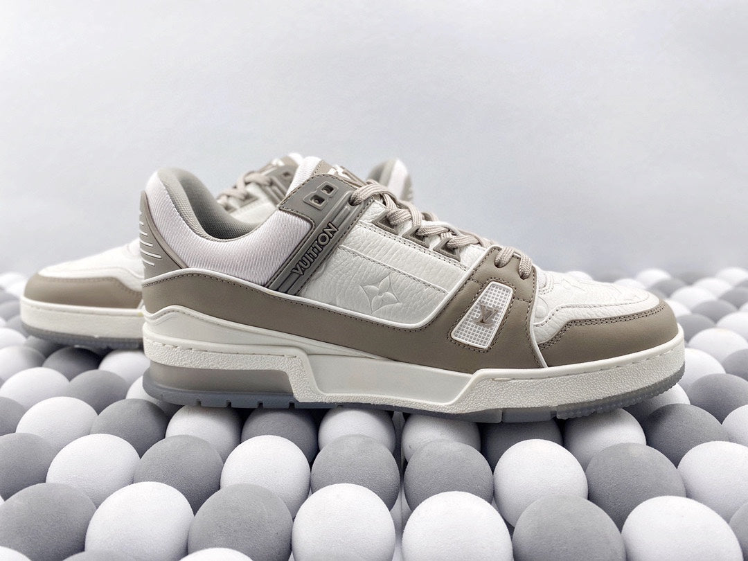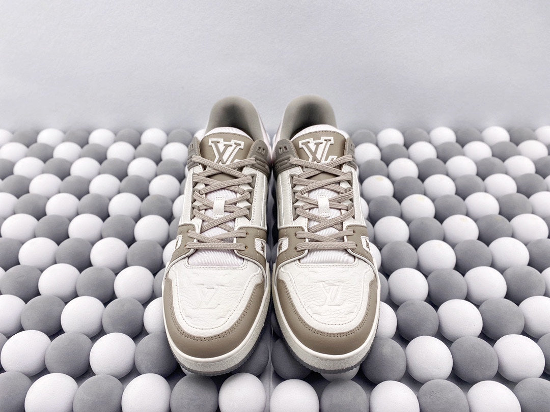 Exclusive In Stock Louis Vuitton 1V Trainer Low-Top Shoes White & Grey