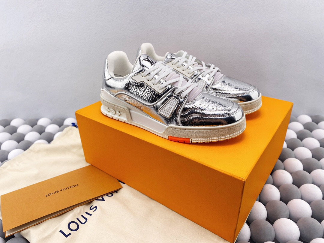 Exclusive In Stock Louis Vuitton 1V Trainer Low-Top Runway Edition Grey & Orange Paris Limited