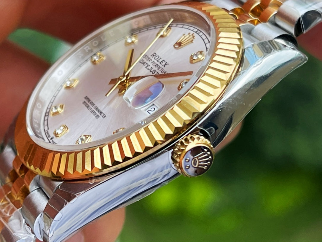 Premium Dial from Top Factory: Carefully selected dials from one of the industry’s leading factories. The sunburst pattern delivers the same light-reflecting effect as the original. Dial logo and font are on par with the authentic version. The hour markers are finely polished with rounded edges and filled with imported luminous powder. Under magnification, the markers appear full and smooth, with ultra-bright and long-lasting luminescence ⚠️. In the dark, the glow is pure and spotless — comparable to both top factories and the original.