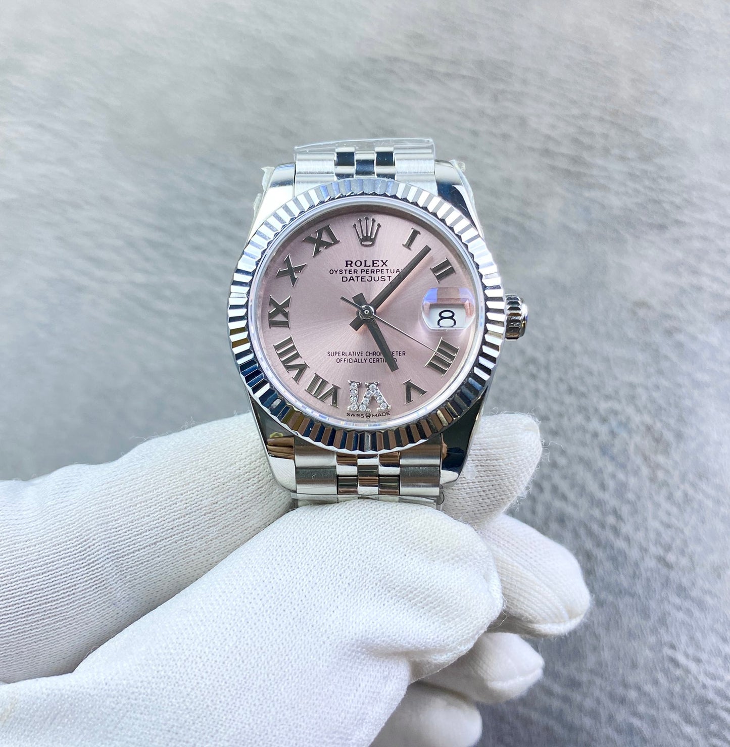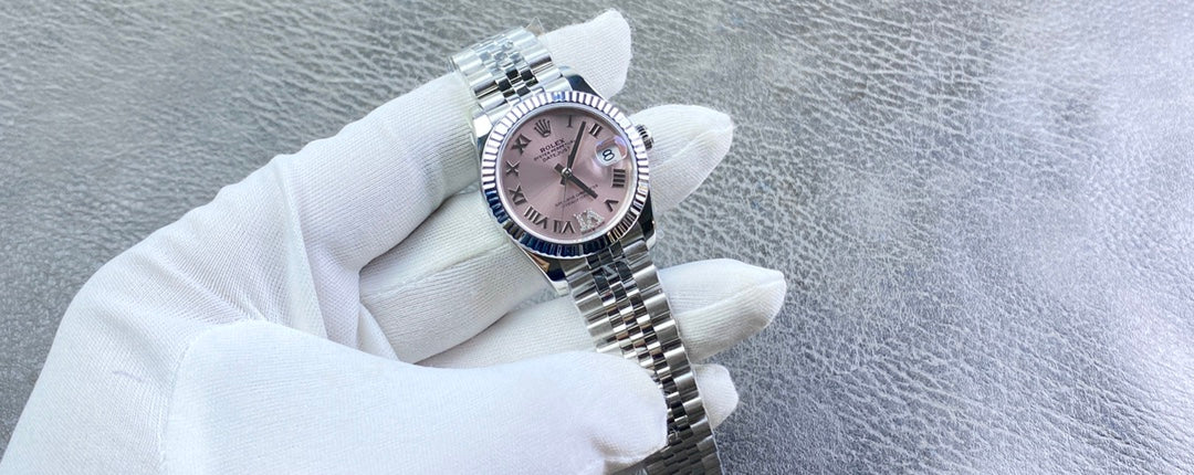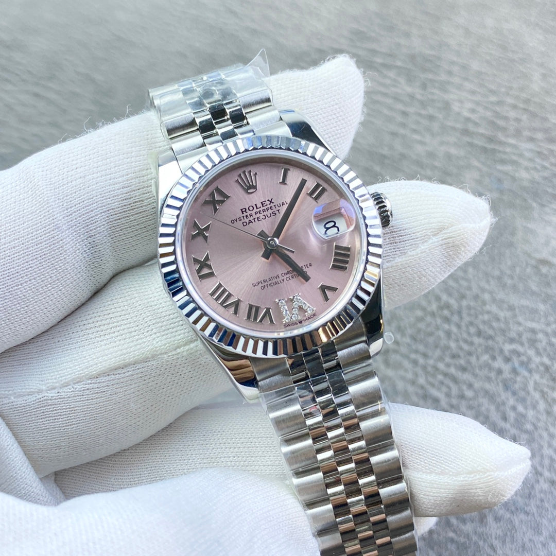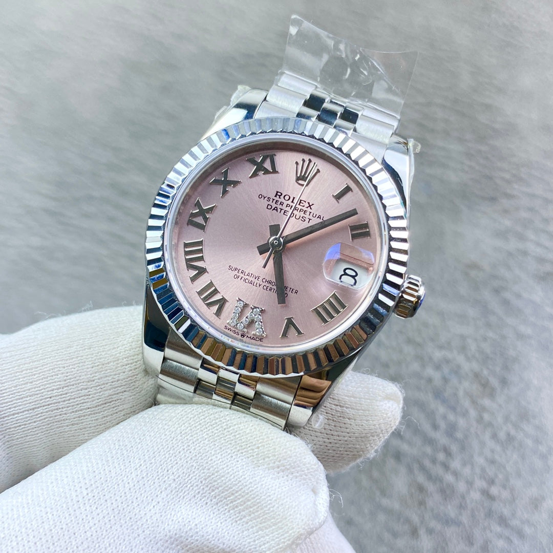 This ROLEX Datejust ladies’ watch features a 31mm case with a delicate pink dial, customized with a Swiss mechanical movement for the client. A watch full of poetic elegance, representing timeless classic design and a choice cherished by those who pursue everlasting sophistication.