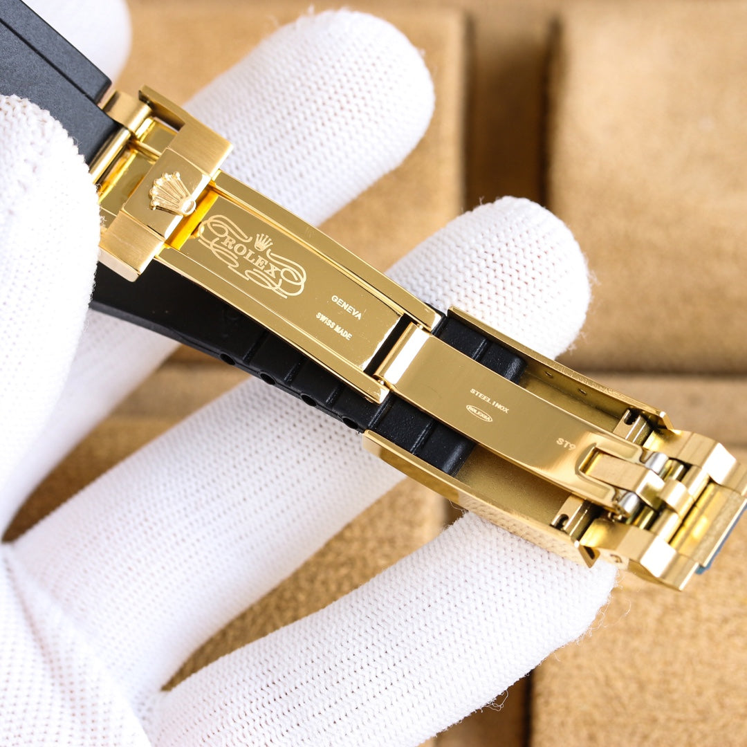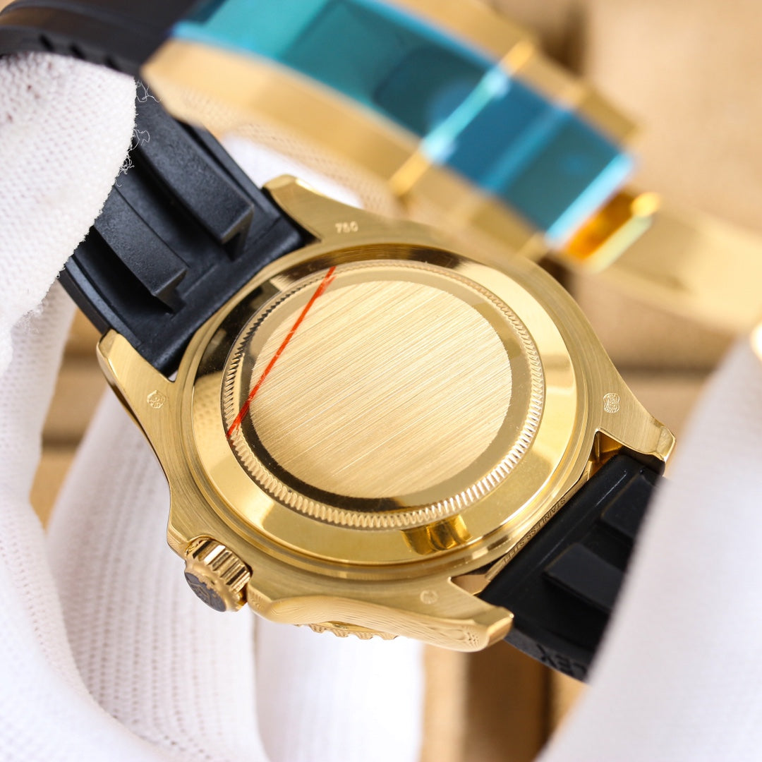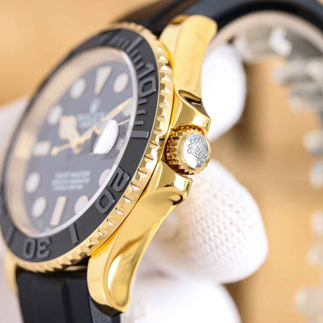 The 42mm Rolex Yacht-Master exudes both strength and charm. The dial features finely polished hour markers with top-tier Swiss ice-blue luminescence, delicate textured background, and perfectly matched colors. The bi-directional ceramic bezel, identical to the original, rotates smoothly in both directions.