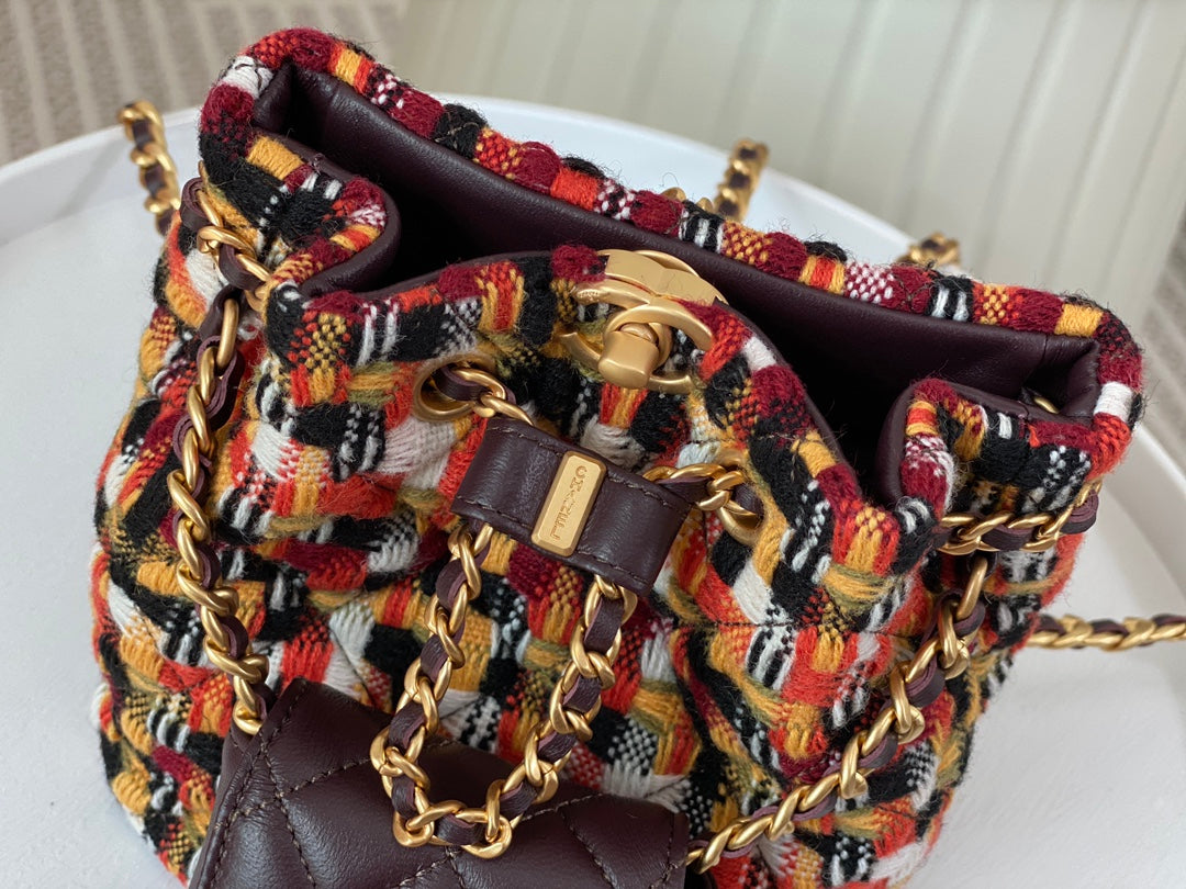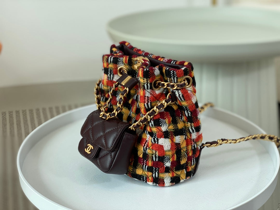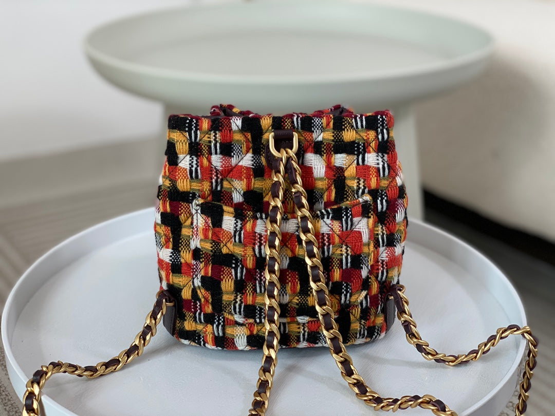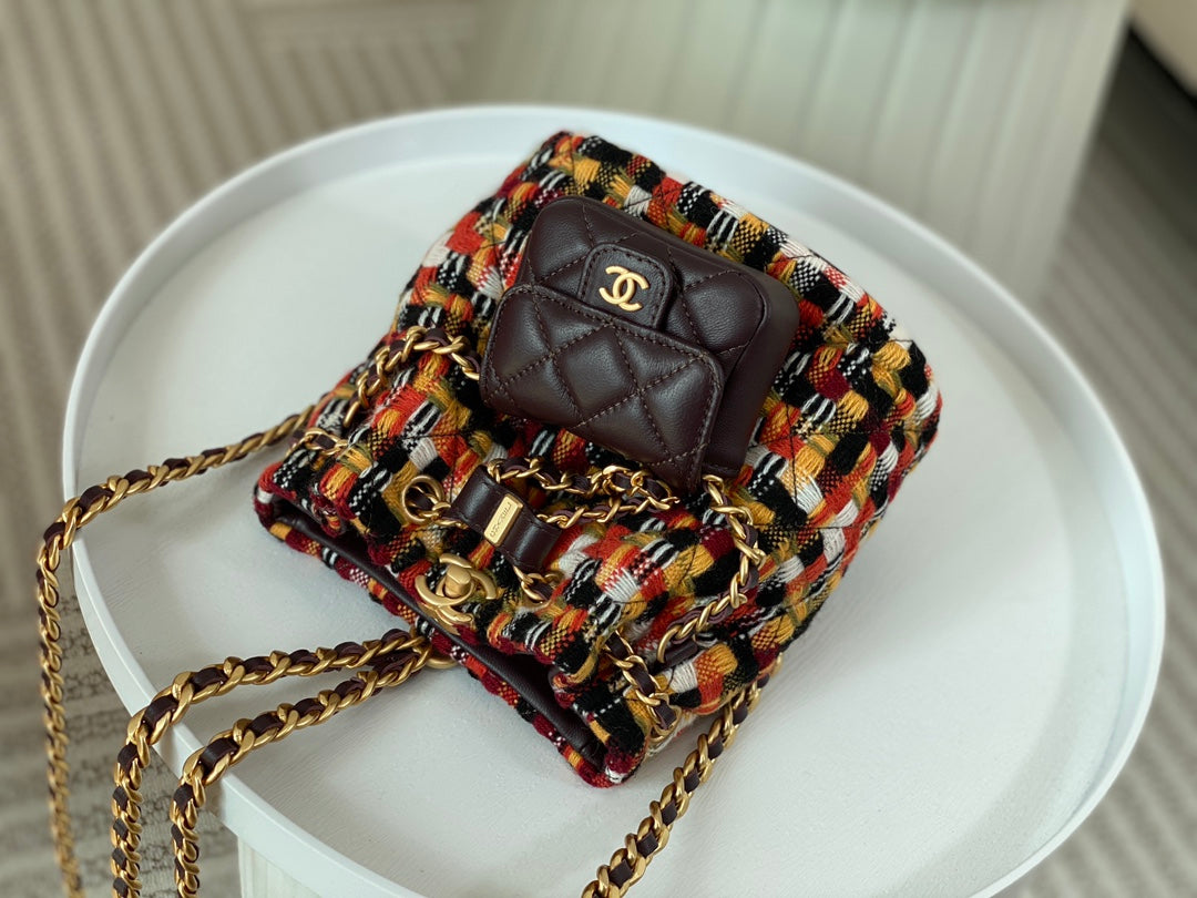 The 23A Mother-Daughter backpack is absolutely stunning! Crafted with woven tweed and soft lambskin, it features: