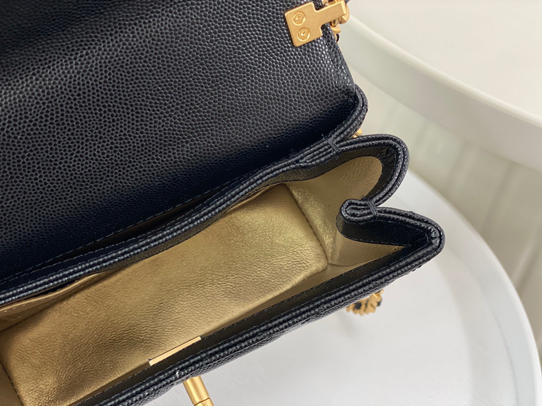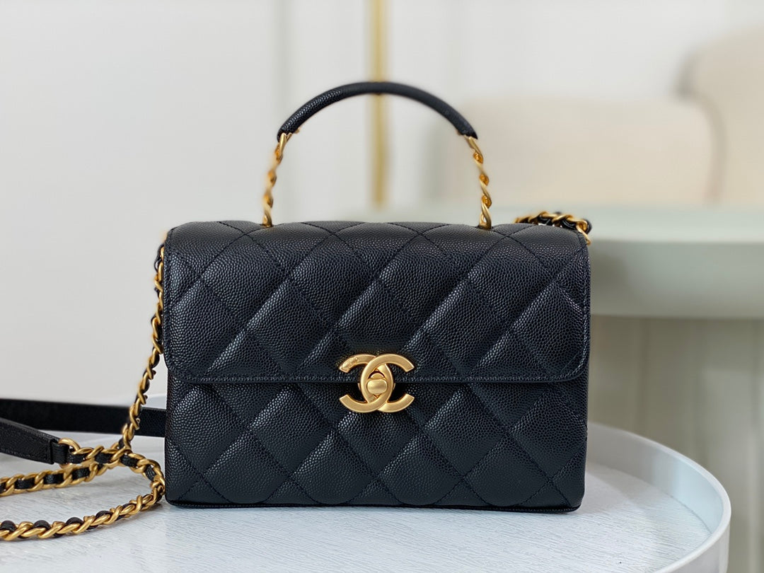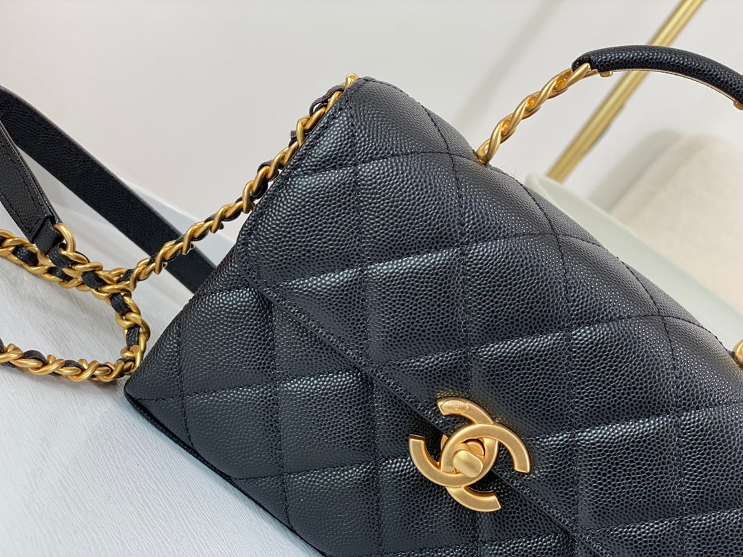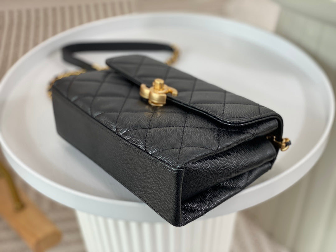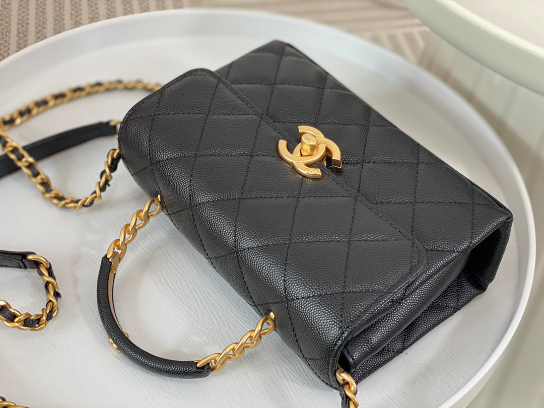 23S third season black Carry Me holds its charm. Mini size, small and exquisite, made of caviar leather 🐂 with aged hardware. The handle design adds extra appeal—black handle plus gold logo is perfectly delicate. Slightly playful and absolutely gorgeous!
