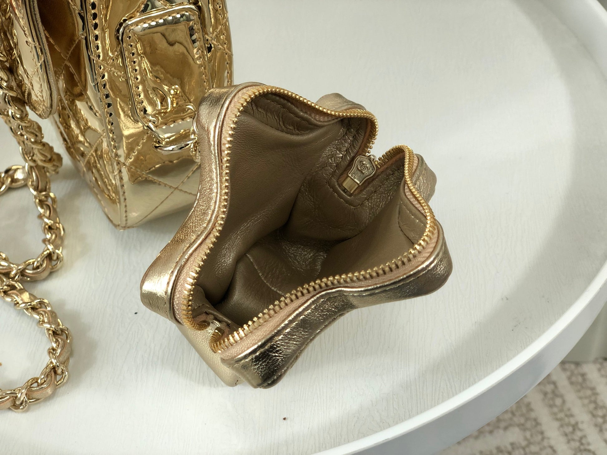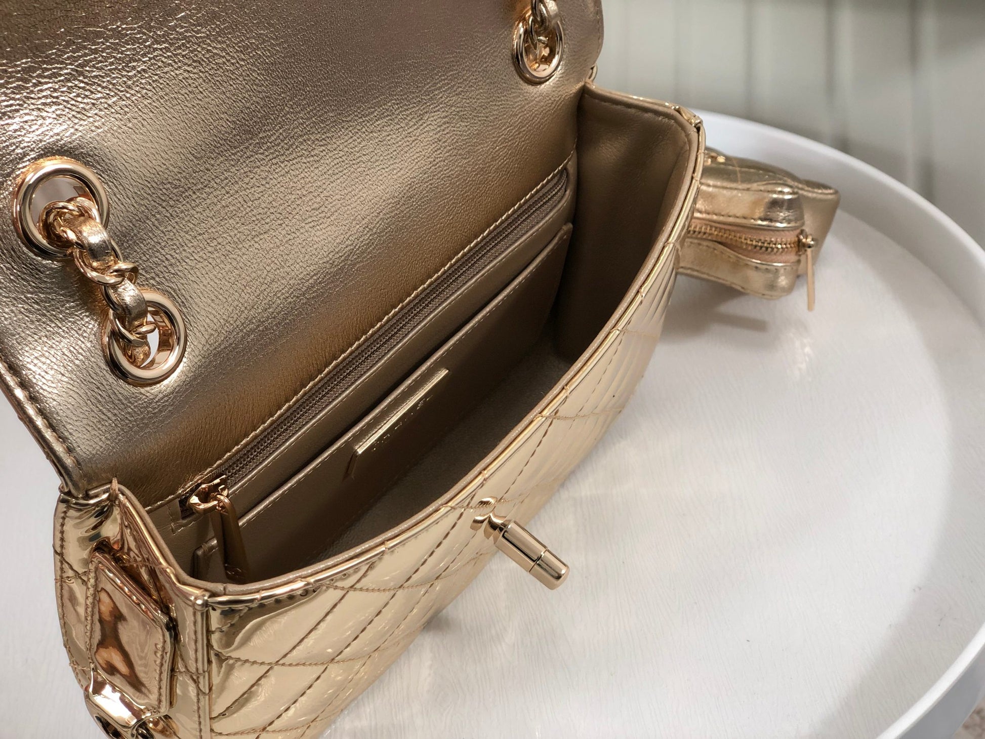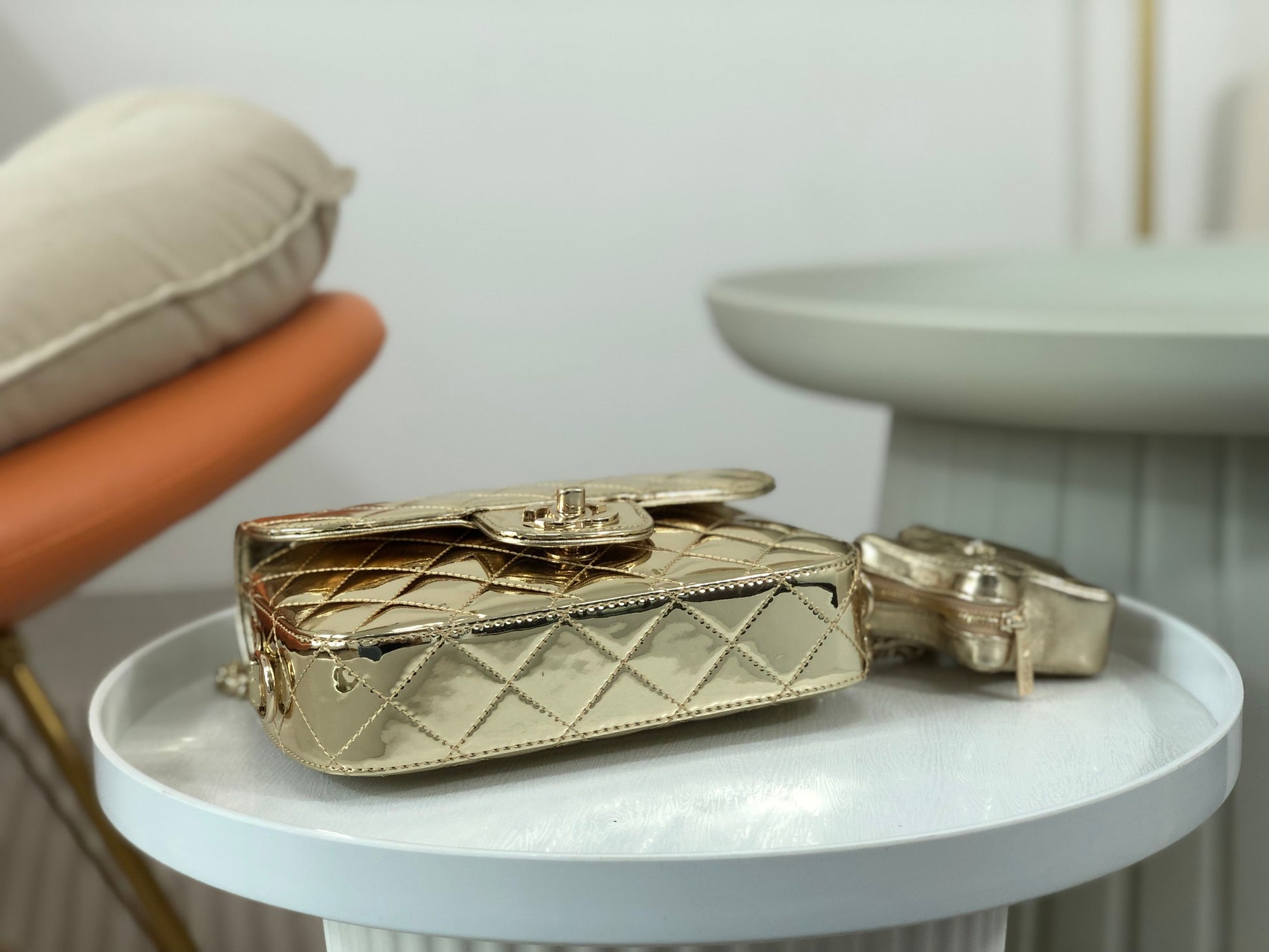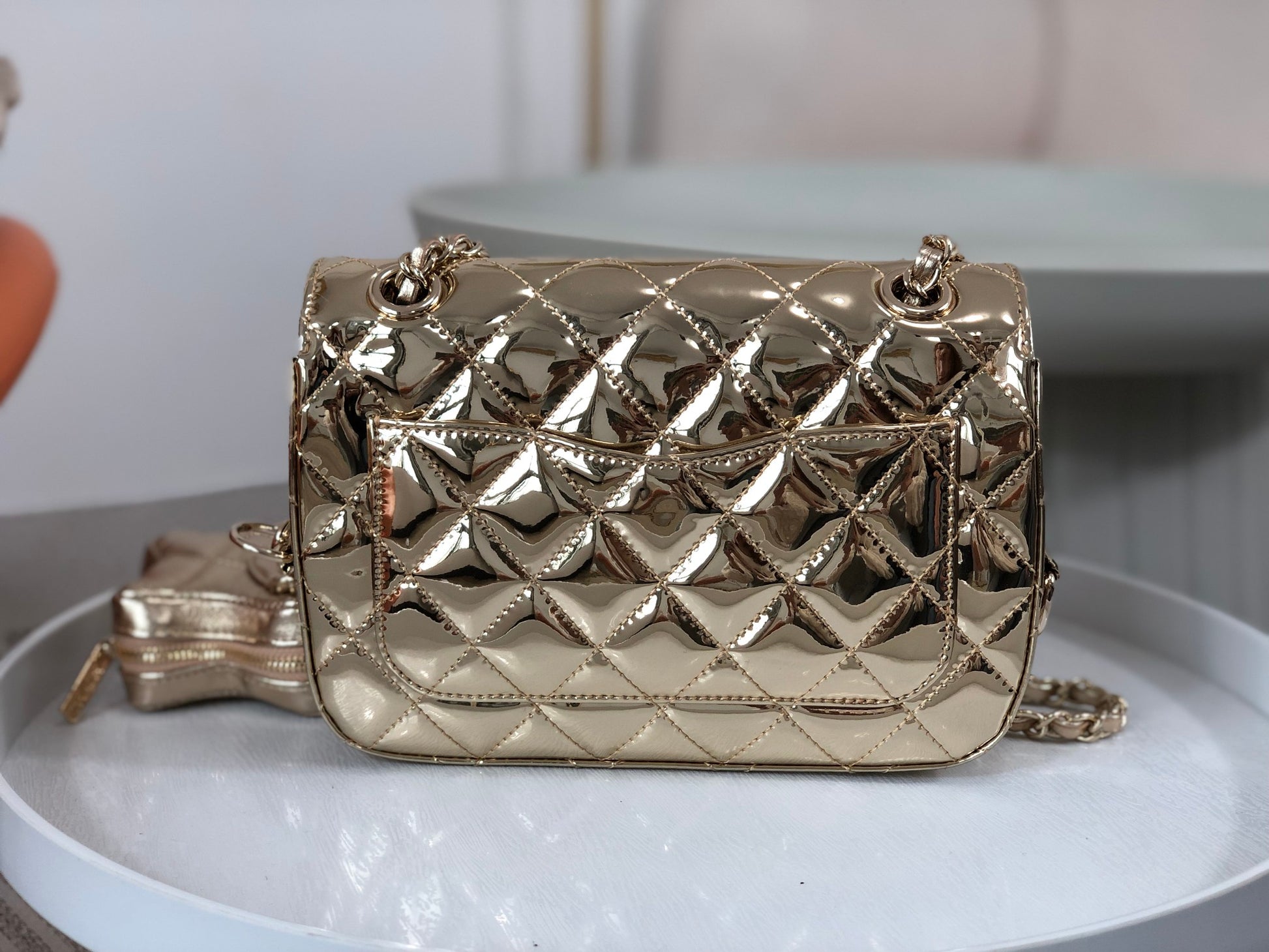 A striking and explosive statement bag, the dream bag for fashionistas. Mirror finish paired with light gold hardware—super cool. /::+ On the side hangs an incredibly cute and eye-catching charm 🤩. The pentagram⭐ star bag features a detachable design, giving a “buy one, get one” vibe.