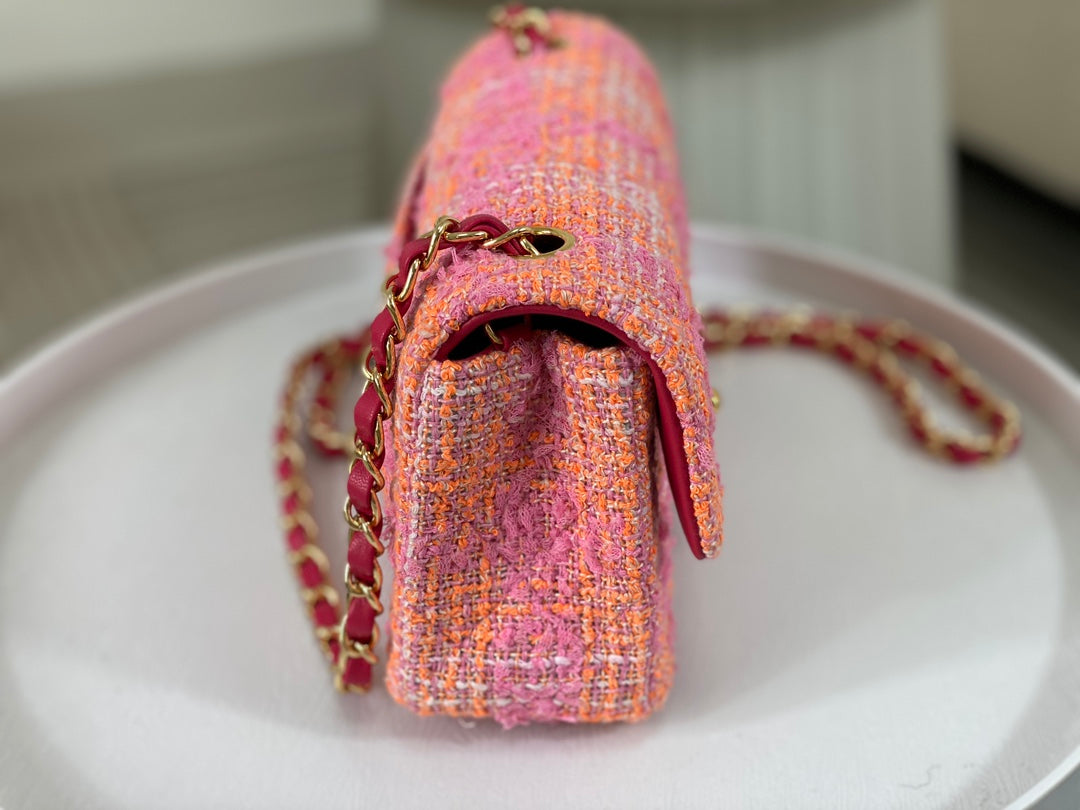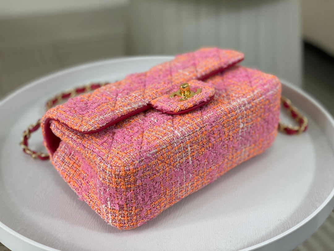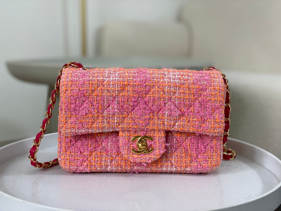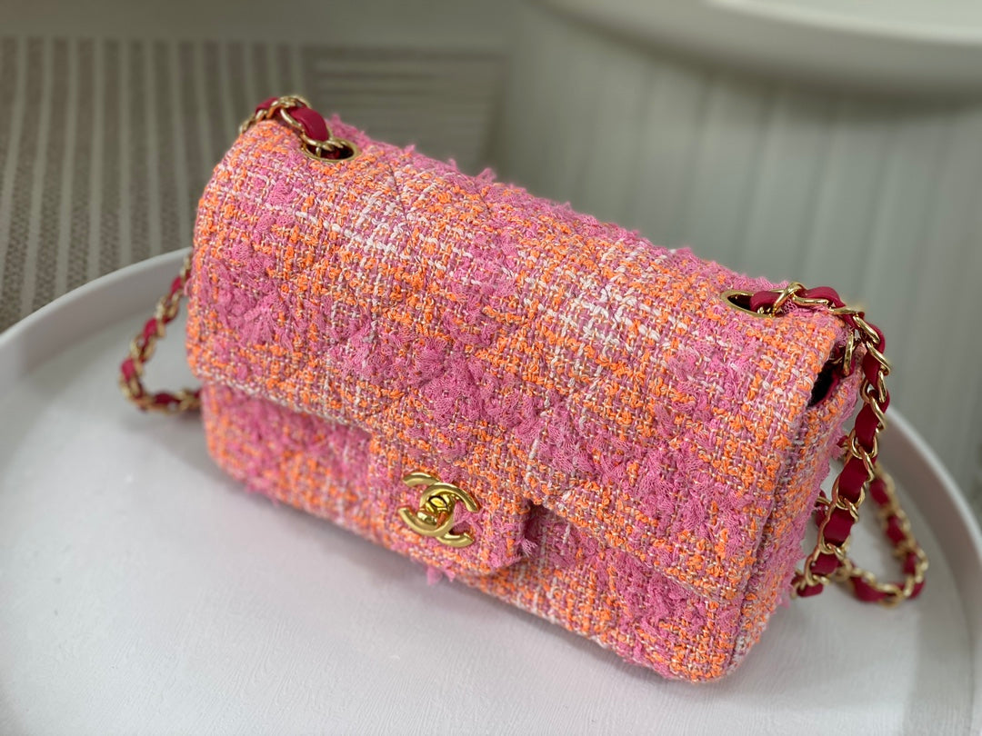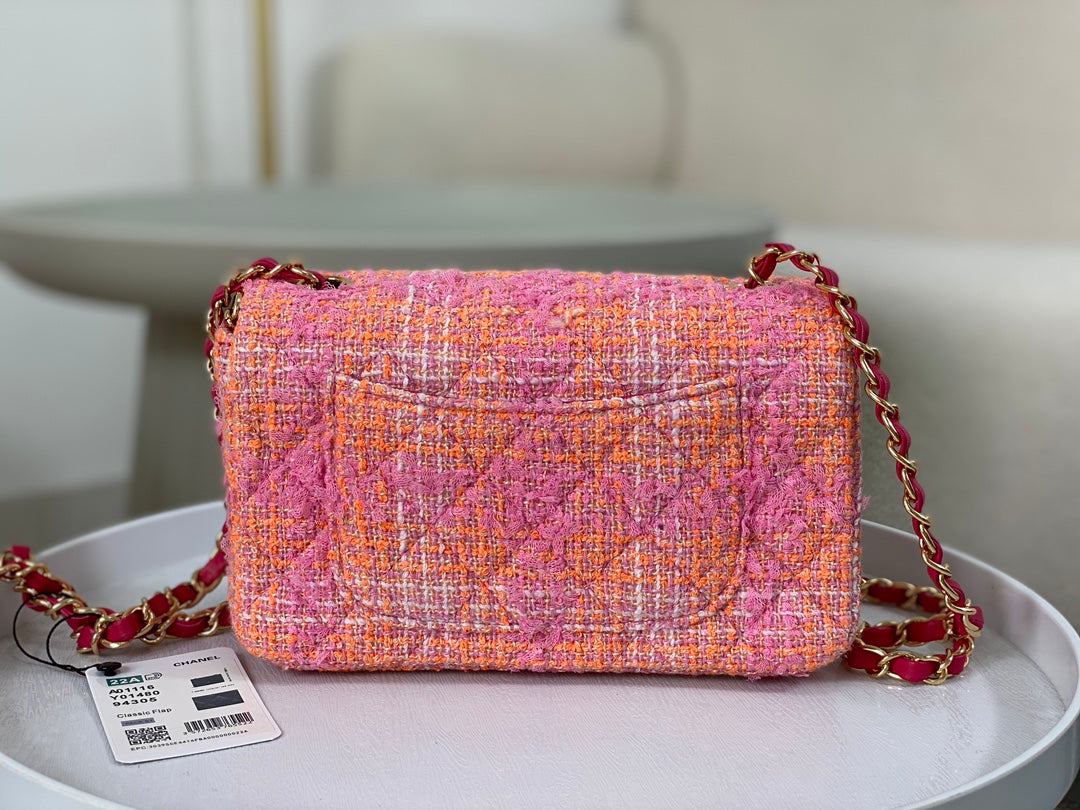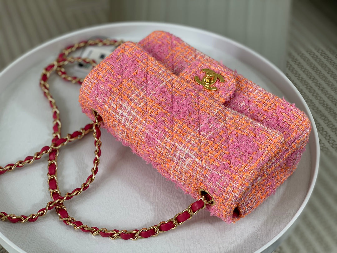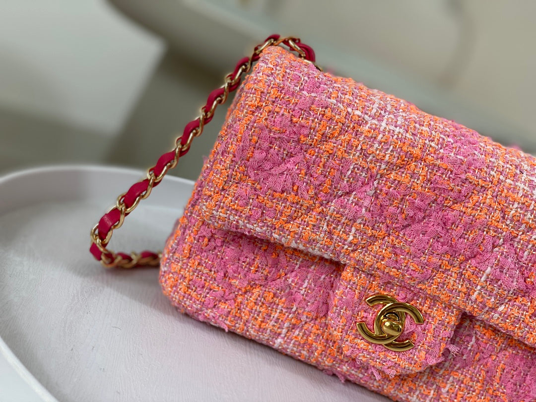 Chanel 1116 CF 毛呢 亮金五金 进口呢子面料 内里搭进口小羊皮/亮金金属 双口盖单肩斜挎链条包 经典中透漏着不一样的清新感 Size:20cm