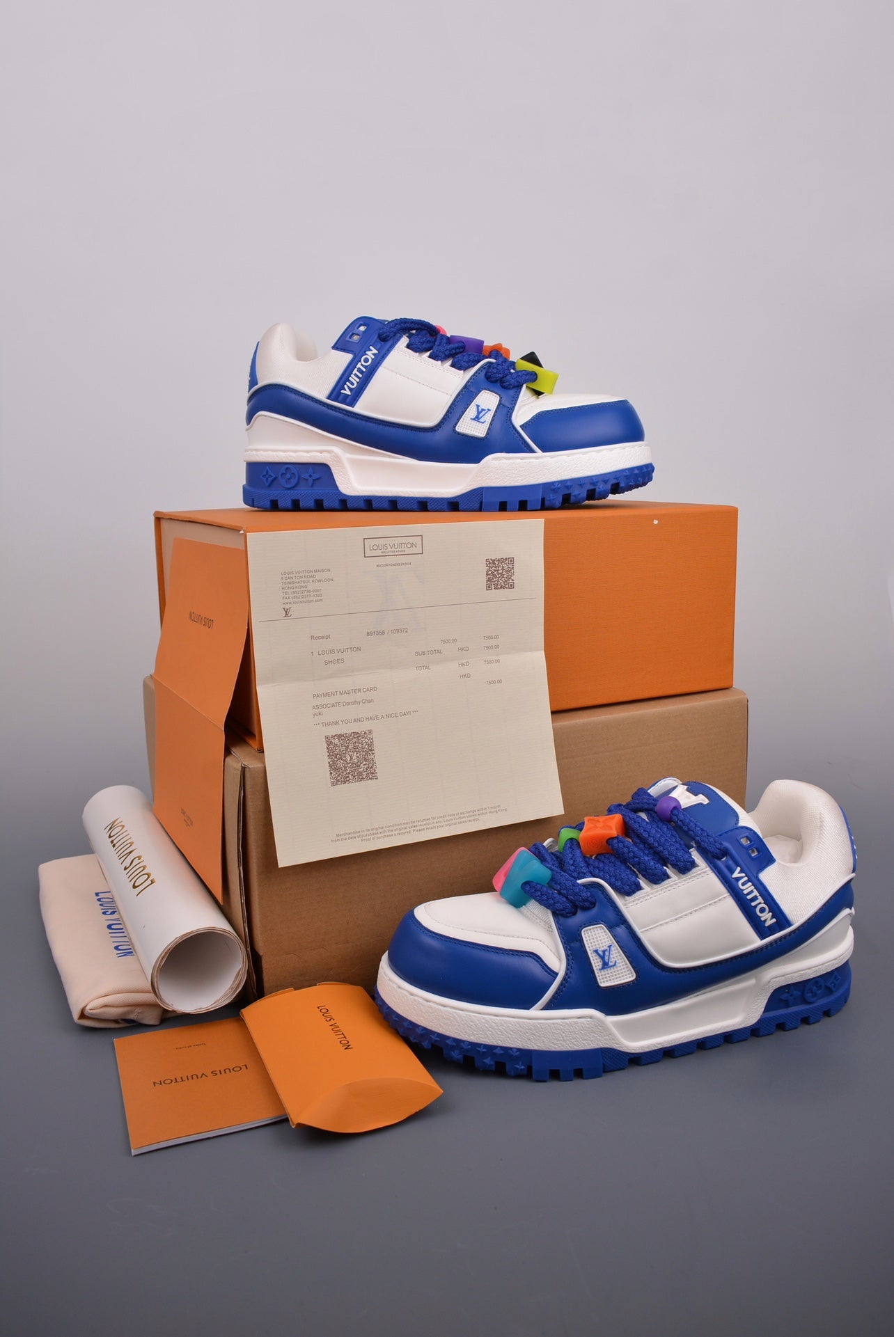 The Trainer series is highly popular, with these vibrant, full-volume “bread” sneakers gaining widespread attention. Oversized design reinterprets Virgil Abloh’s hit LV sports fashion shoes. Custom TPU outsole, three-color thick sole, providing a perfect height increase of 4–5 cm.