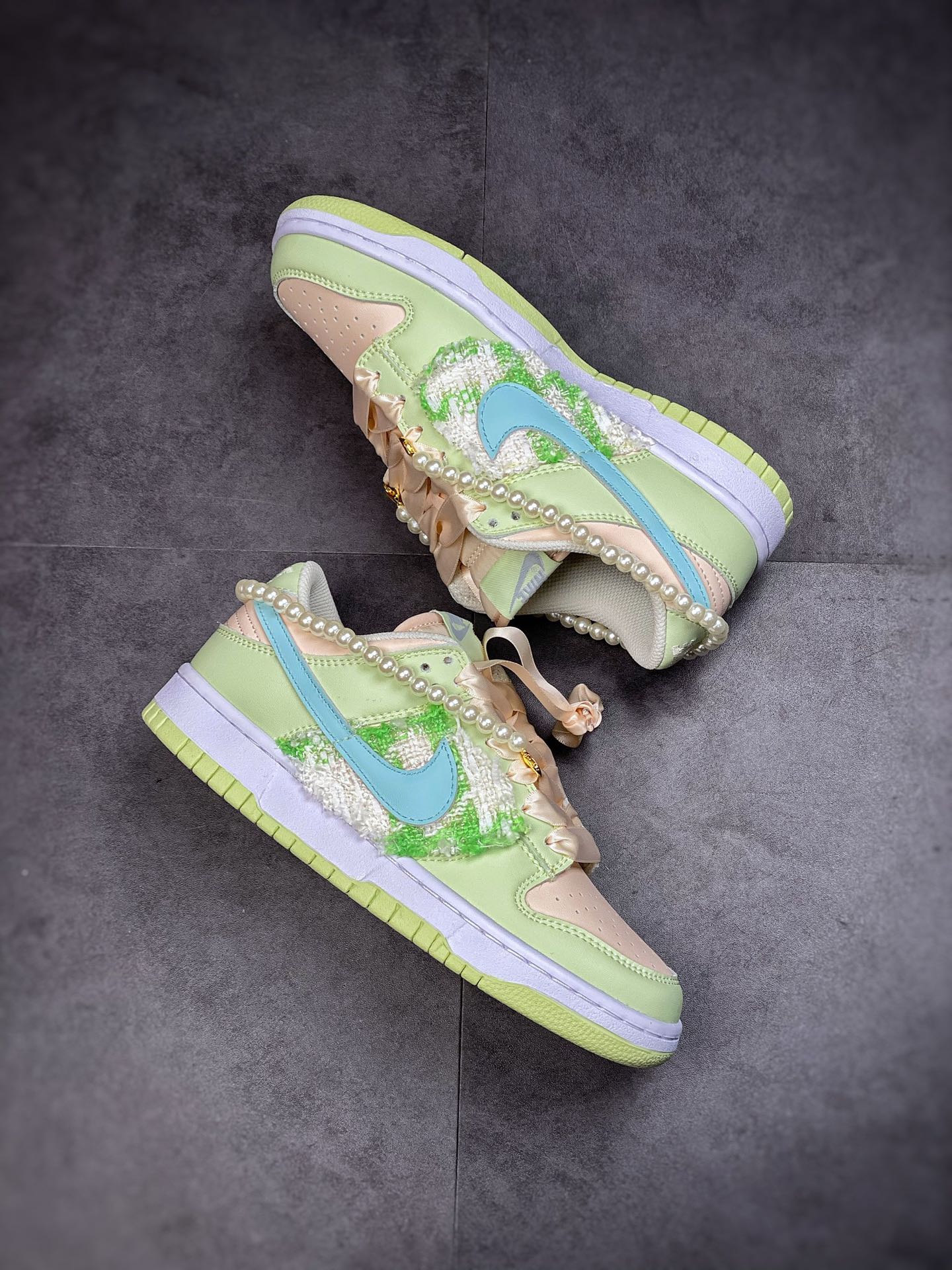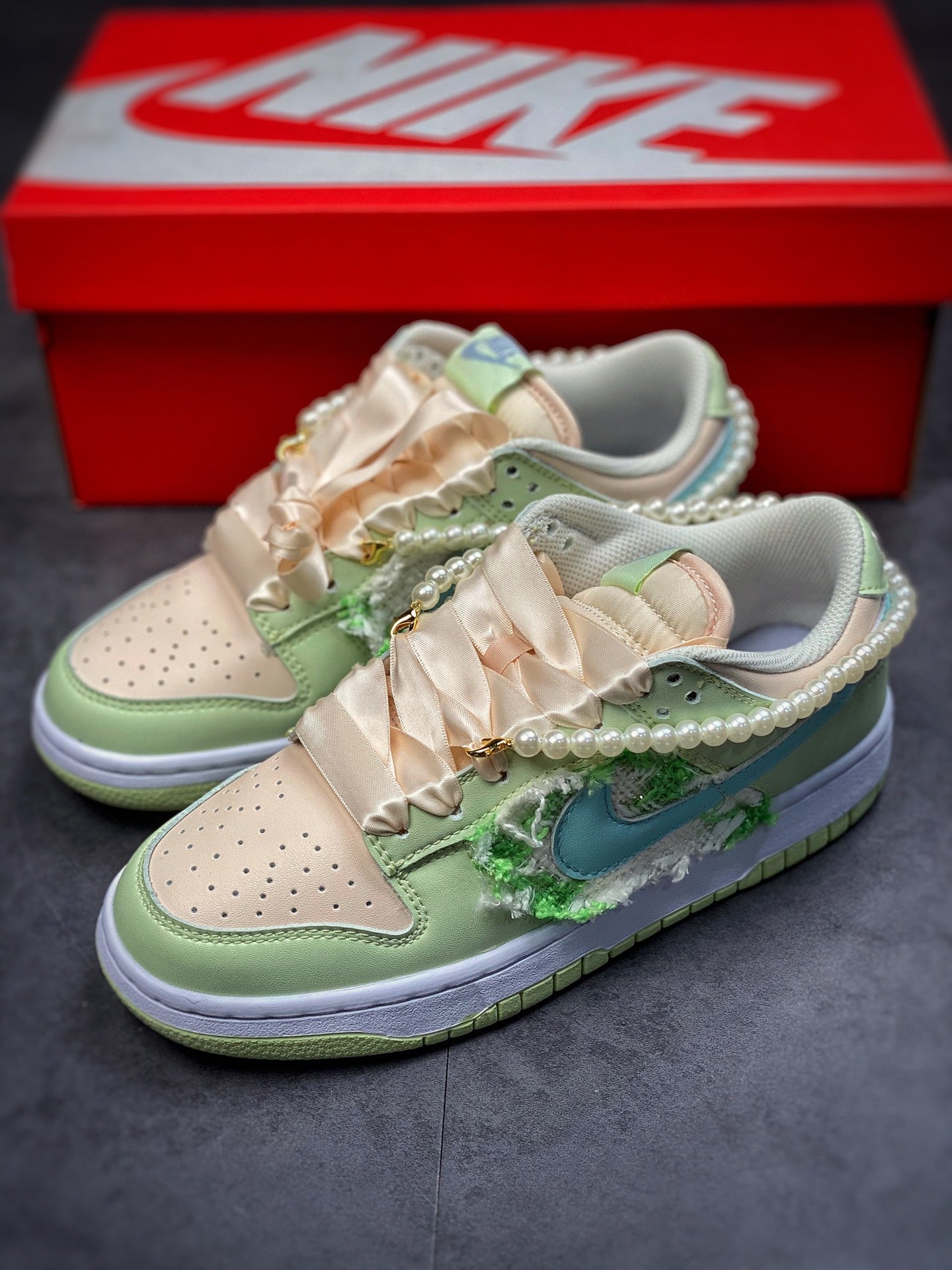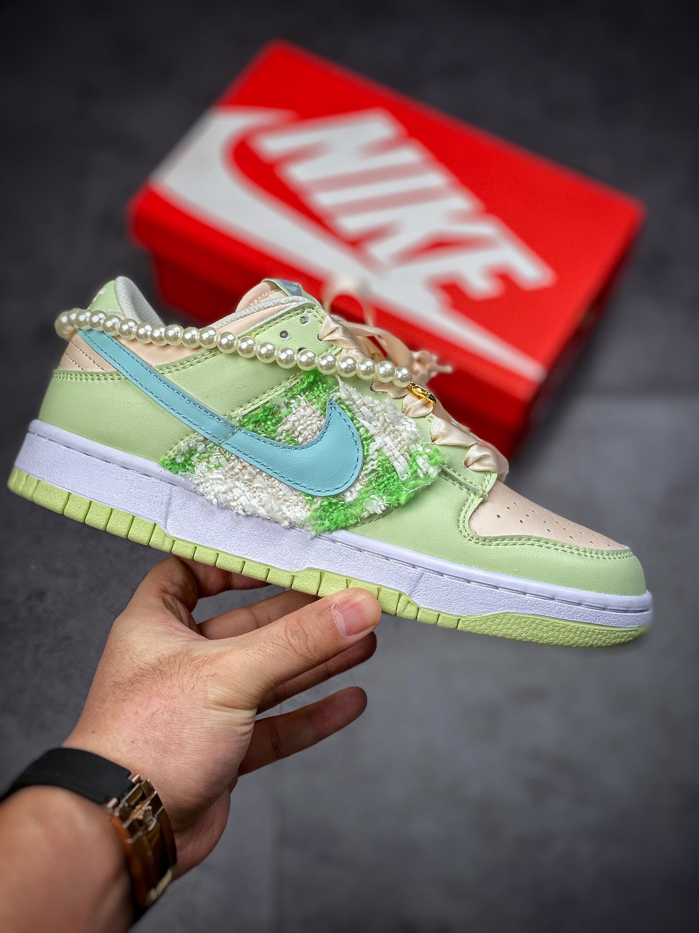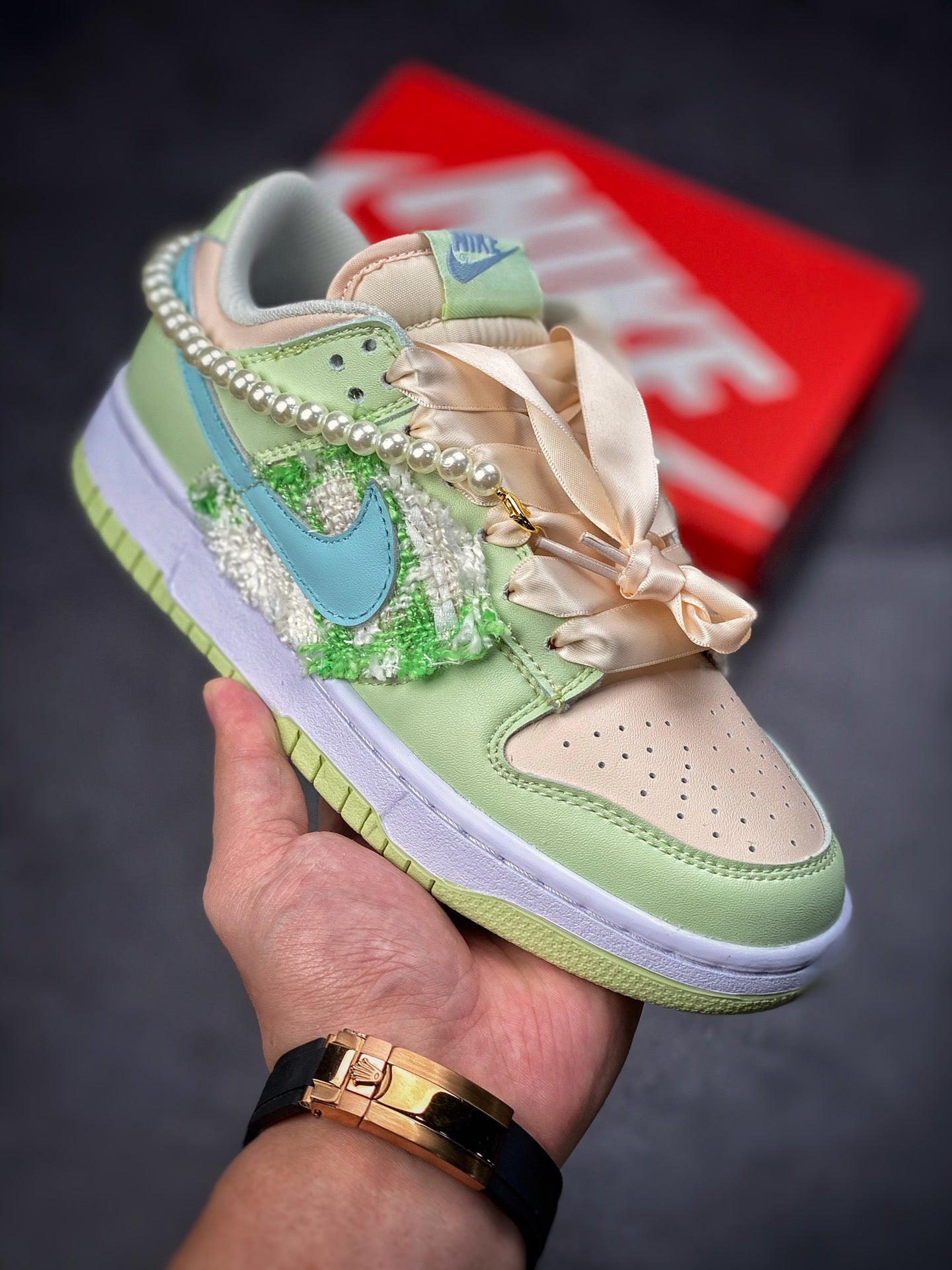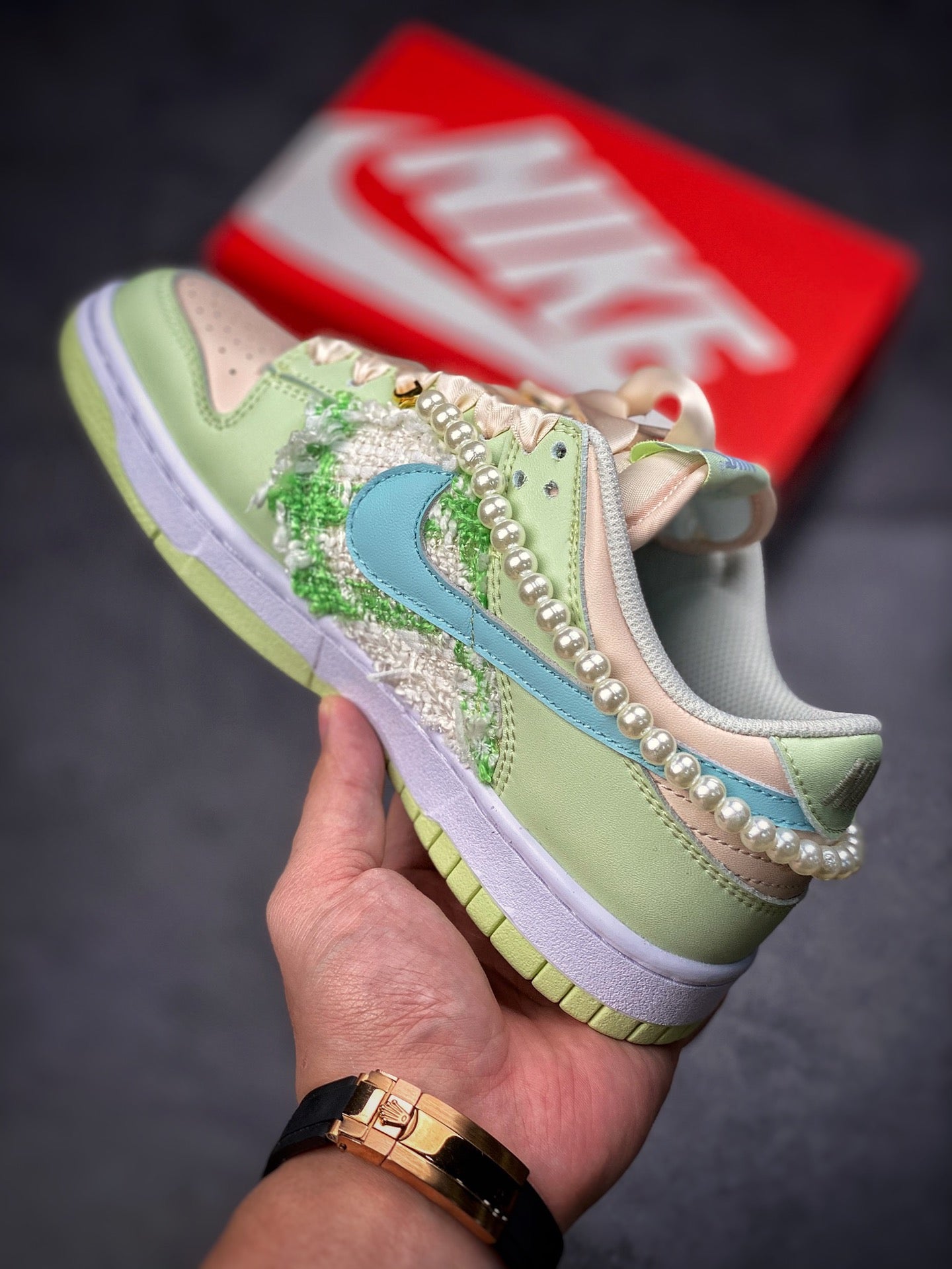 Nike Dunk Low – Pink & Green “Chanel Style” 💖💚