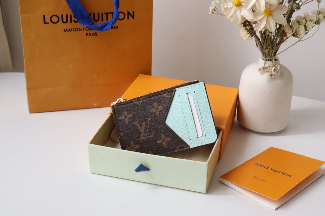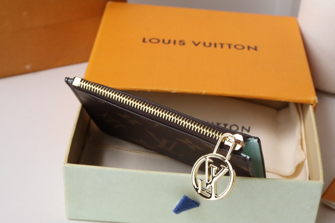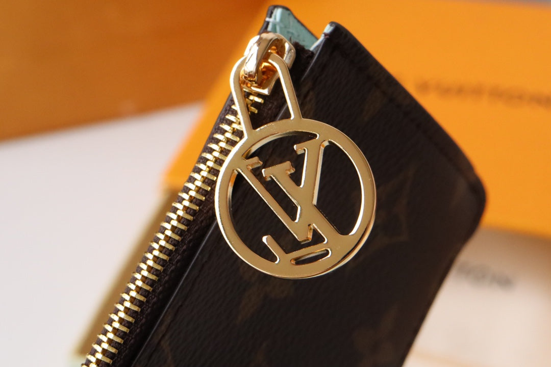 Exuding modern elegance, this piece combines the minimalist design of a cardholder with the practicality of an accordion-style zip pouch, ideal for storing loose cash, coins, or receipts. Crafted from Monogram canvas, it features vibrant leather lining and is adorned with the signature gold-tone LV Circle zipper pull.