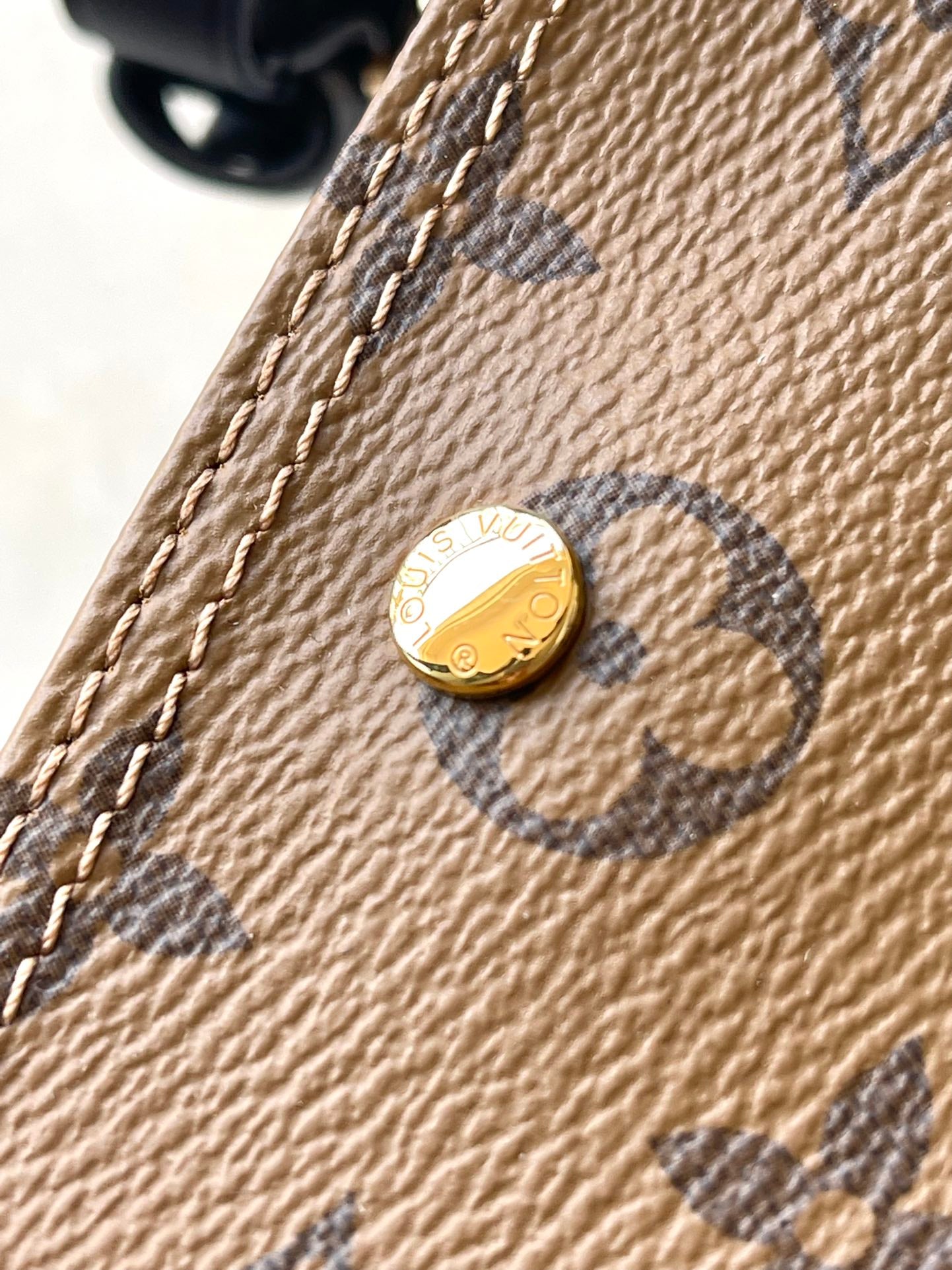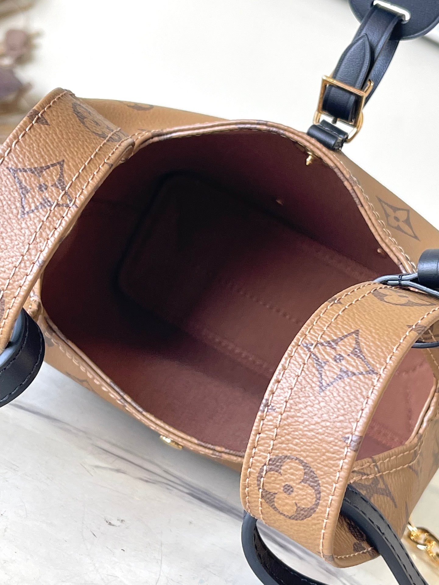 This Atlantis BB handbag is crafted from Monogram Reverse canvas, accented with leather trims outlining the LV logo and shoulder strap. Featuring a trendy tote-inspired design, the bag is soft and close-fitting. The detachable and adjustable strap allows for convenient crossbody wear.