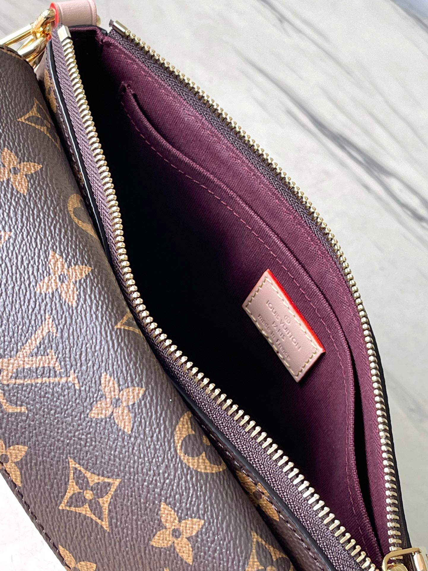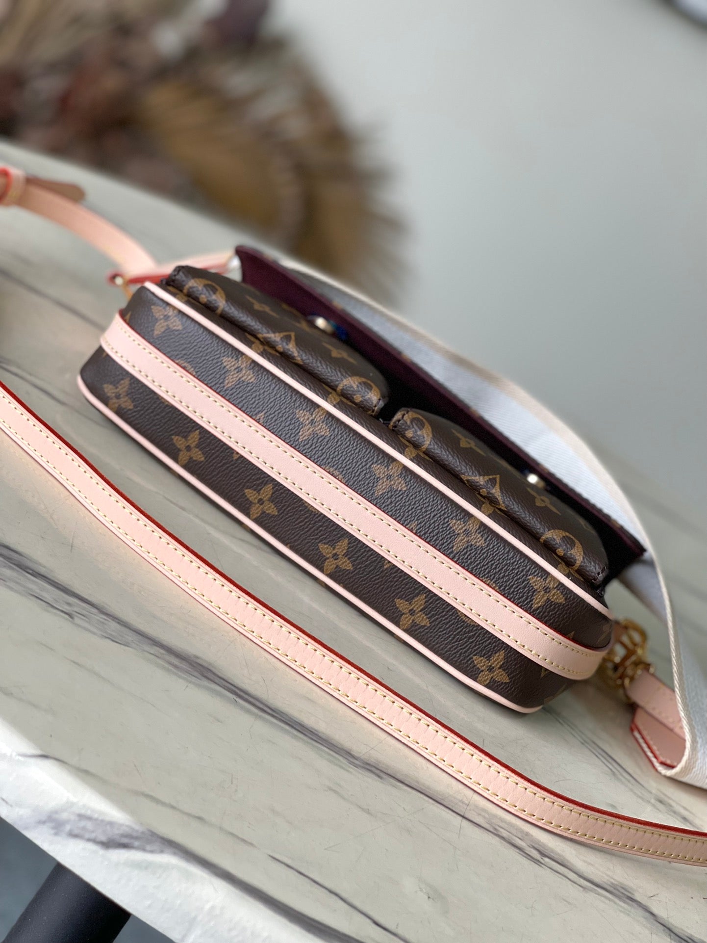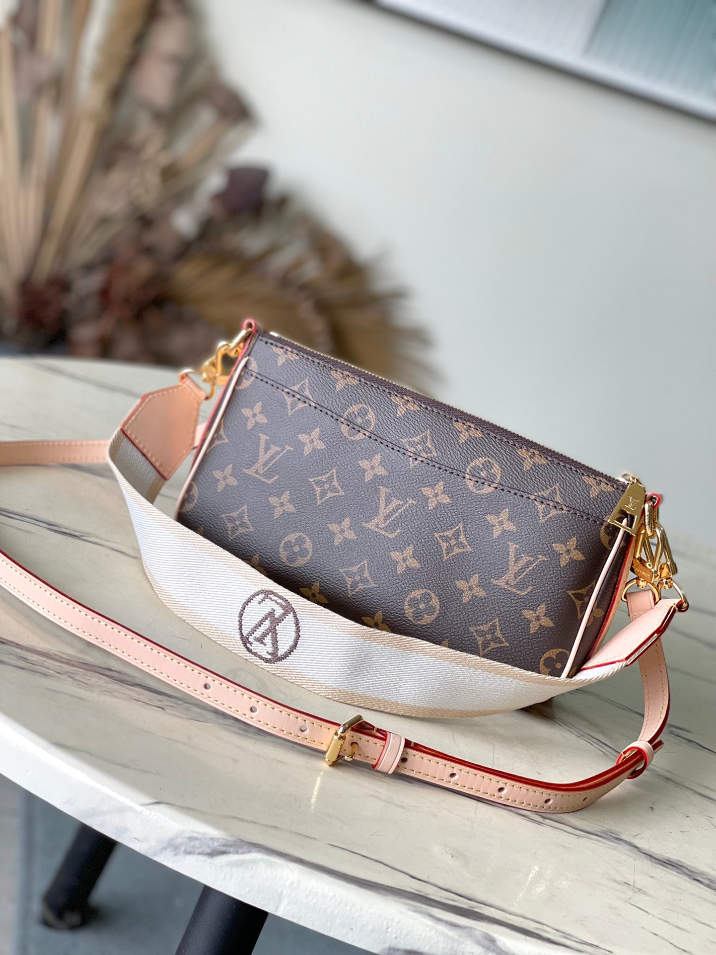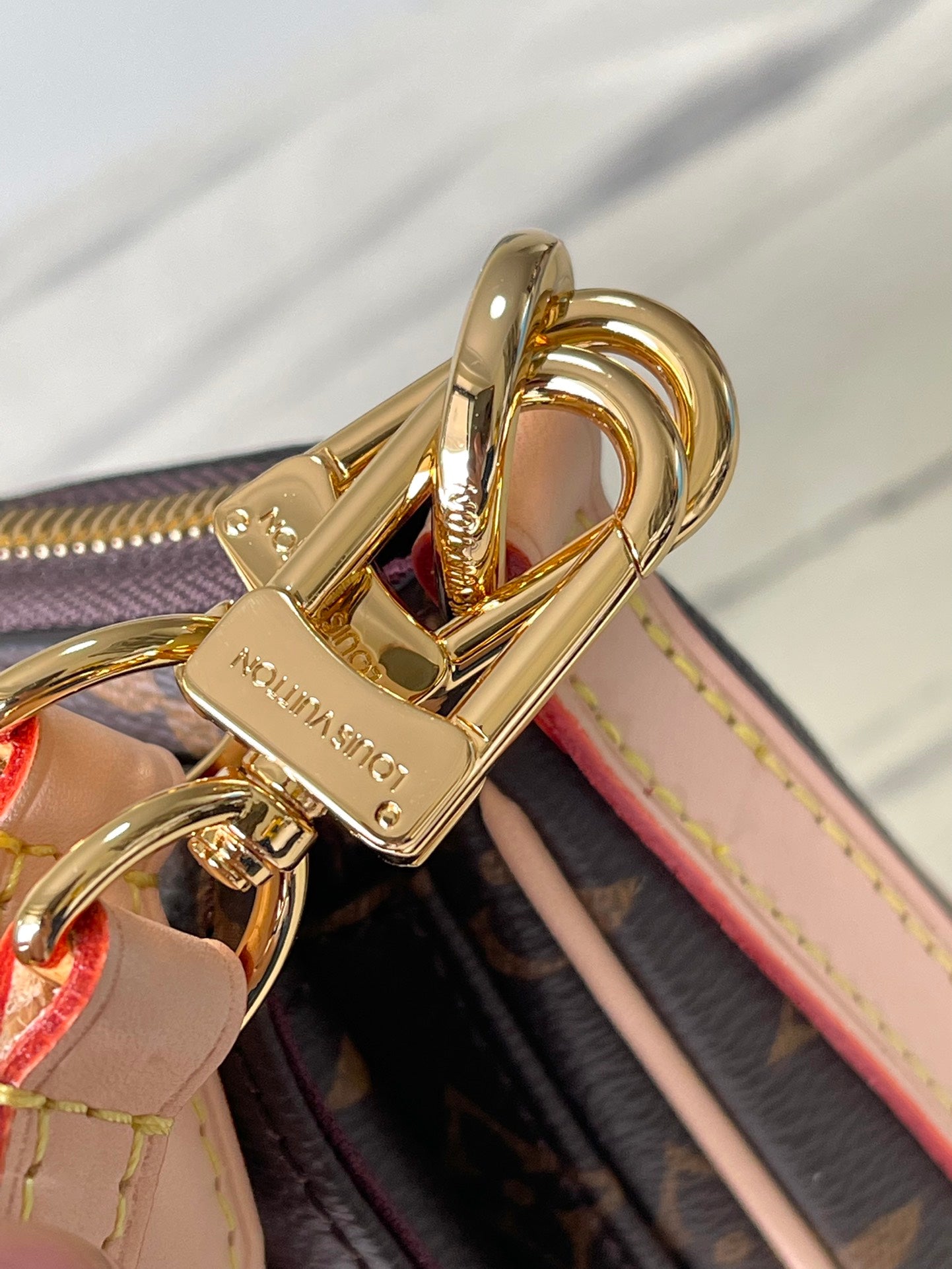 The Vibe handbag draws inspiration from the Viva-cité bag created by the brand in 2003. Crafted from Monogram canvas, it features a compact silhouette. Its interior and exterior pockets offer practical organization, while the leather shoulder strap and short fabric strap with LV Circle accents allow for versatile carrying options.