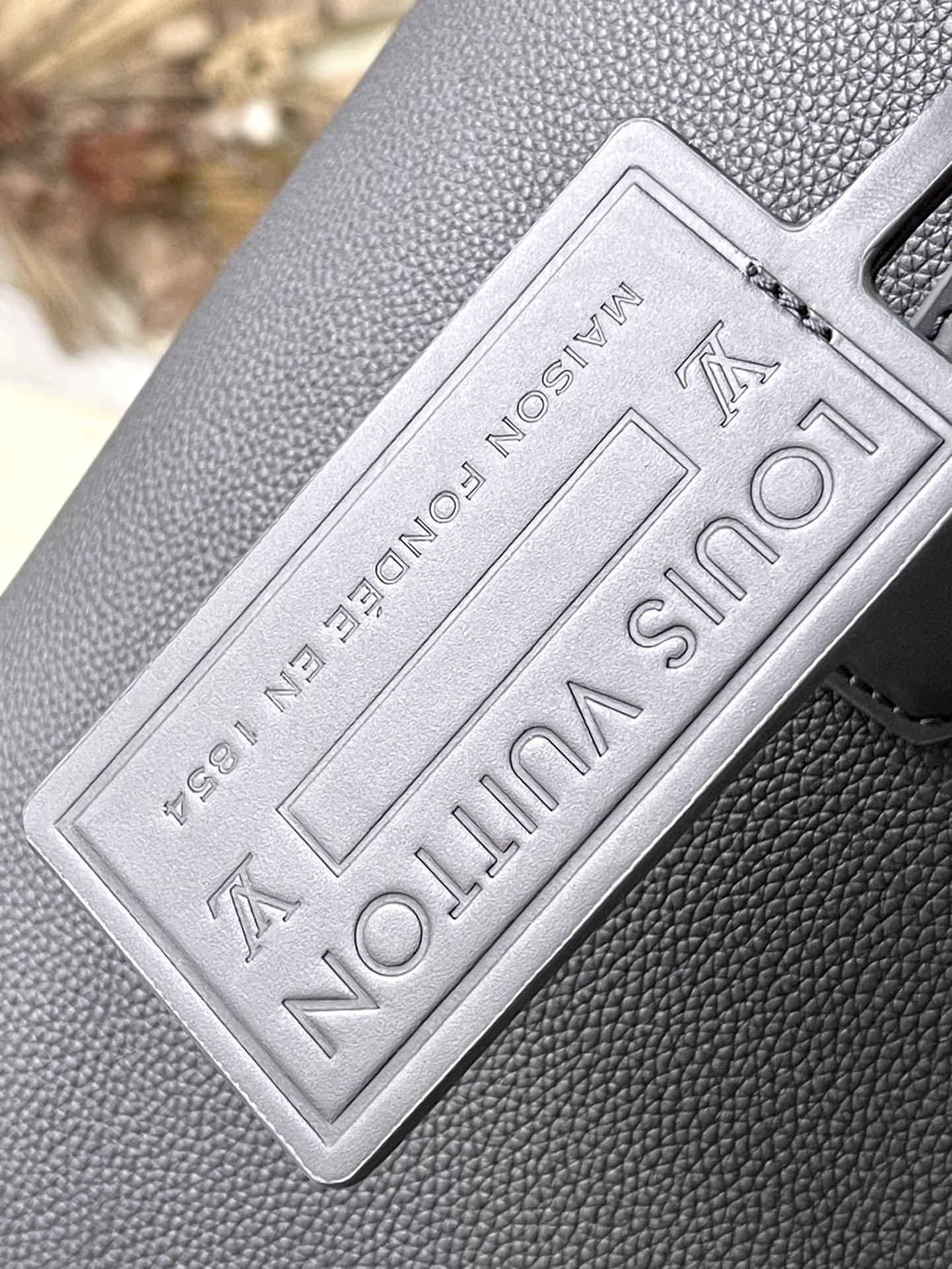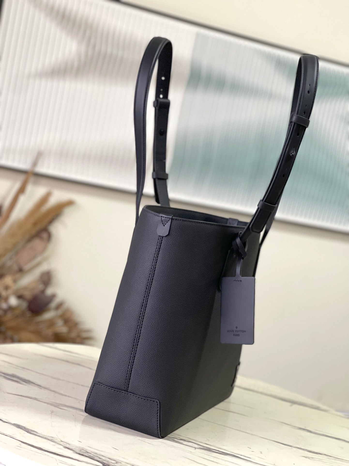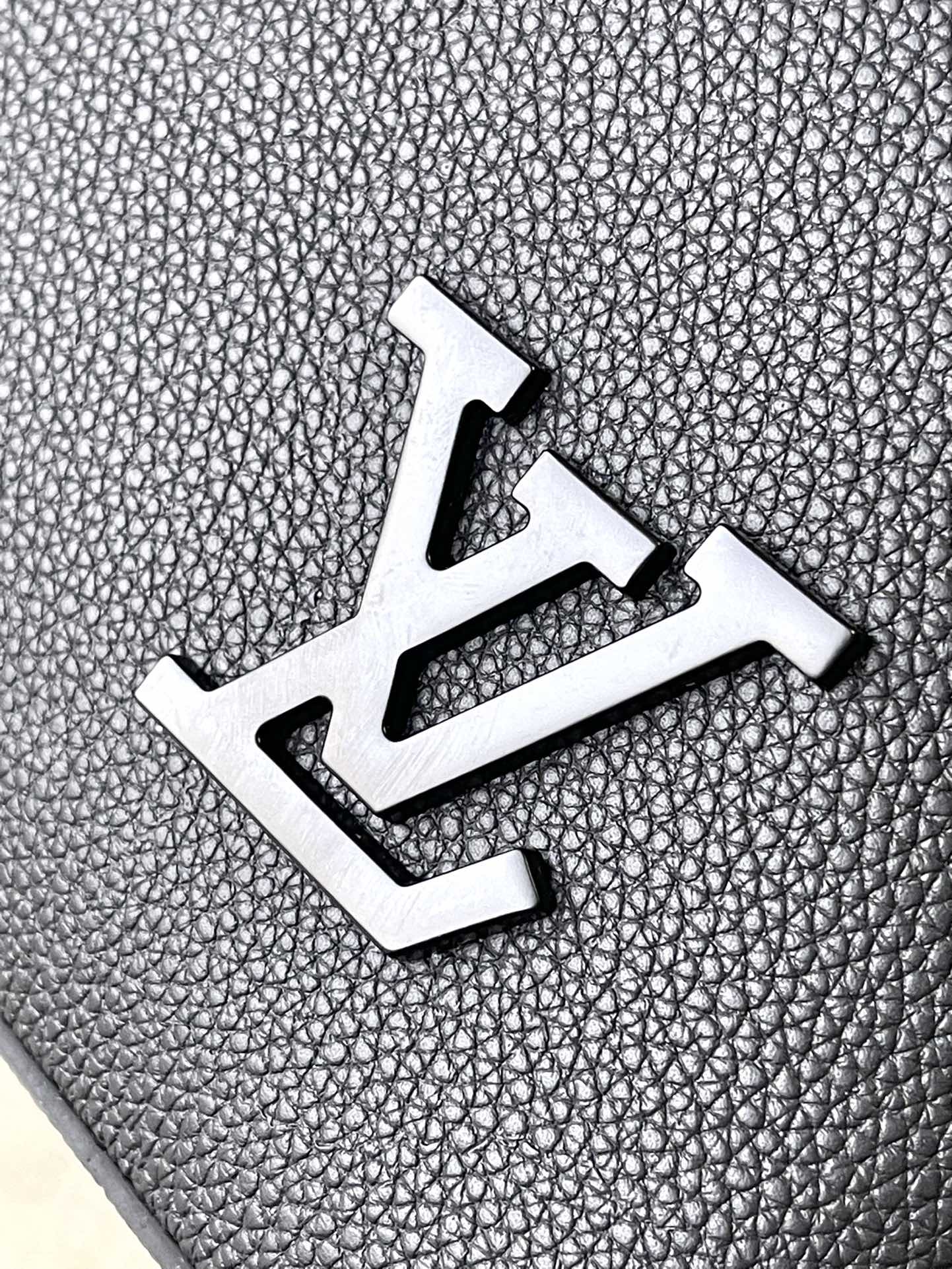 This minimalist Fastline tote is crafted from supple cowhide leather, accented with matching metallic finishes and leather studs. Its adjustable handle allows it to be carried by hand or worn on the shoulder. The spacious interior with multiple pockets adds functionality to its sleek design. The LV tonal initials discreetly appear in the lower corner.