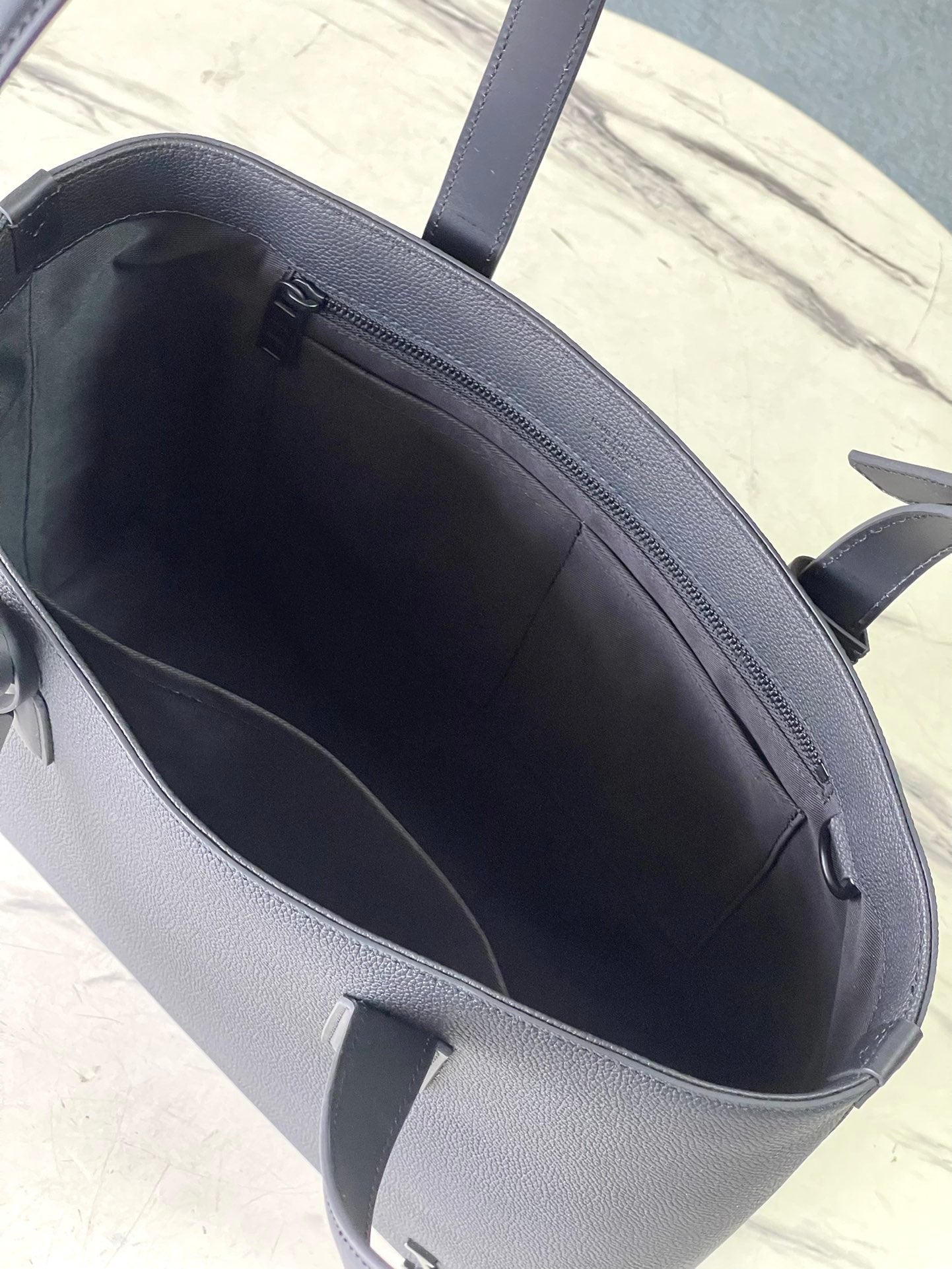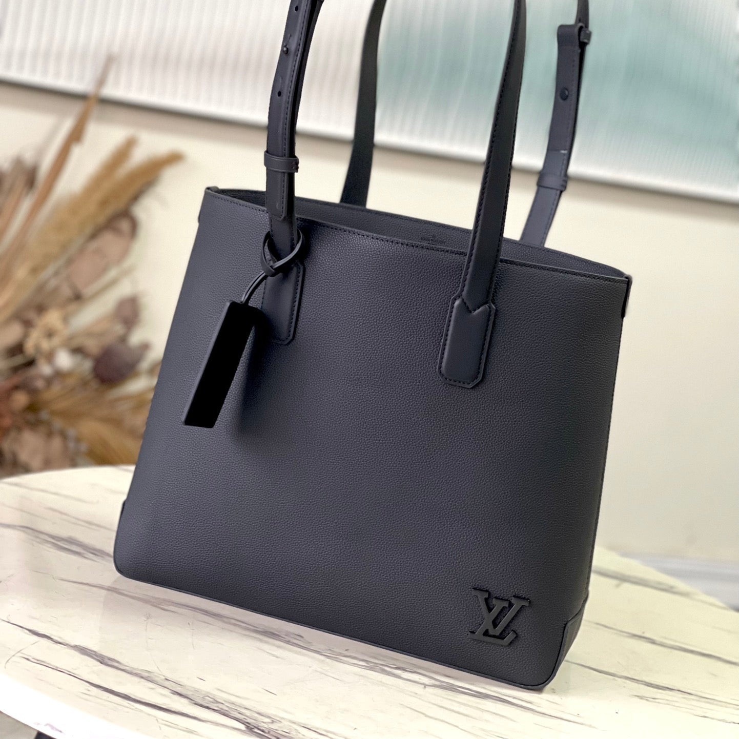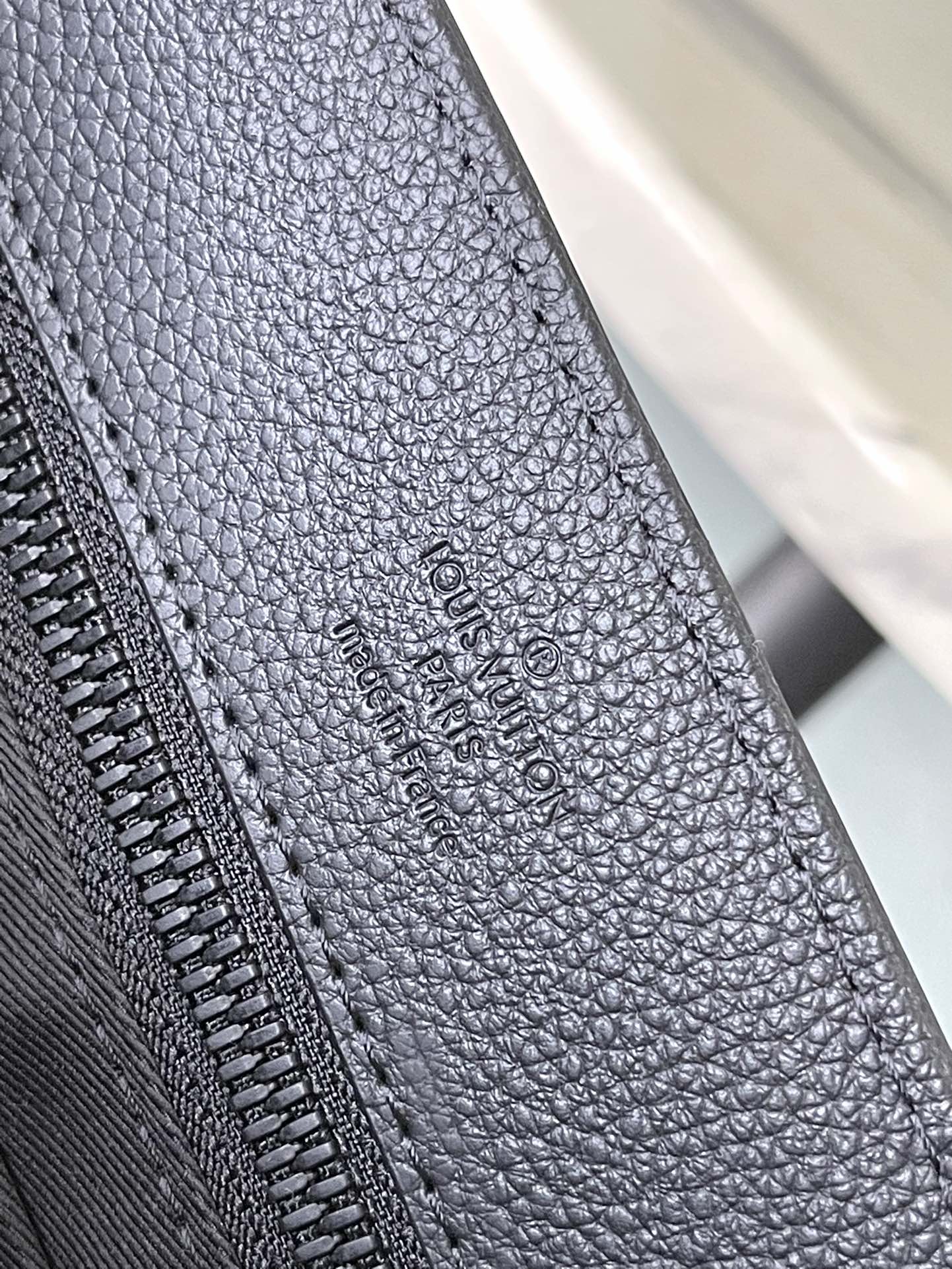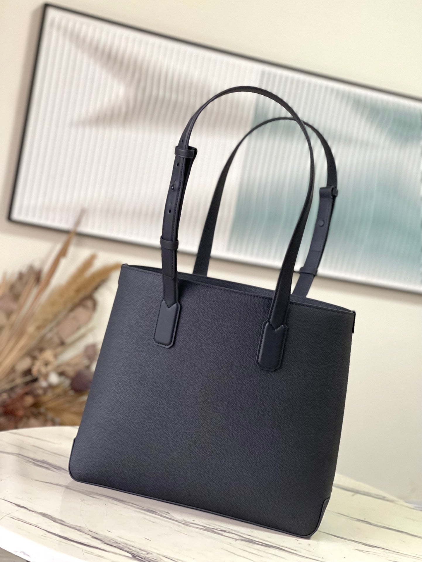 This minimalist Fastline tote is crafted from supple cowhide leather, accented with matching metallic finishes and leather studs. Its adjustable handle allows it to be carried by hand or worn on the shoulder. The spacious interior with multiple pockets adds functionality to its sleek design. The LV tonal initials discreetly appear in the lower corner.